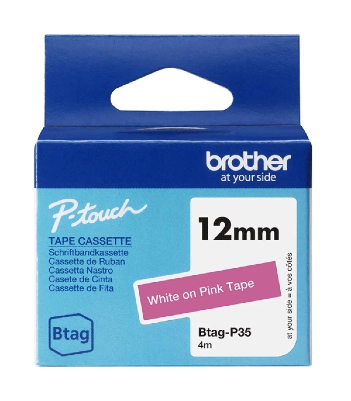 La cinta original Brother Btag P35-blanco sobre rosa de 12 mm, es perfecta para la organización doméstica. Crea etiquetas para organizar los artículos de la cocina, el dormitorio, la oficina o los objetos personales, así como los libros de texto y los artículos de papelería de los niños.