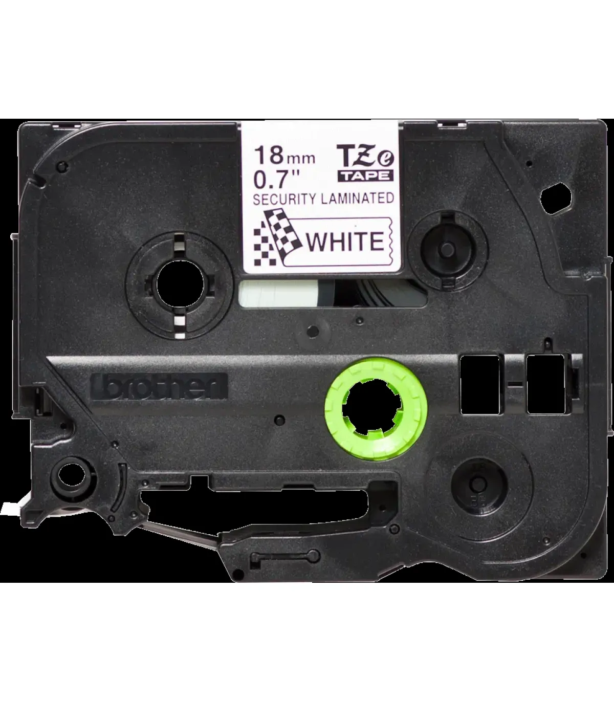 Brother TZeSE4 cinta laminada de seguridad original para imprimir etiquetas con una rotuladora electrónica.