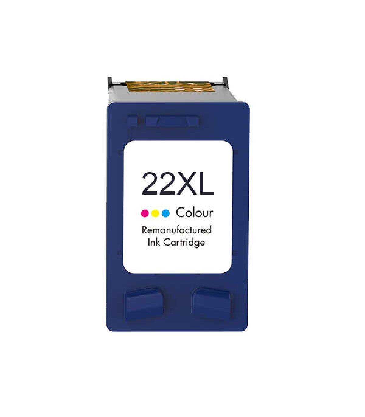 Cartucho de tinta remanufacturado HP 22XL (C9352AE/C9352CE) de alta calidad.