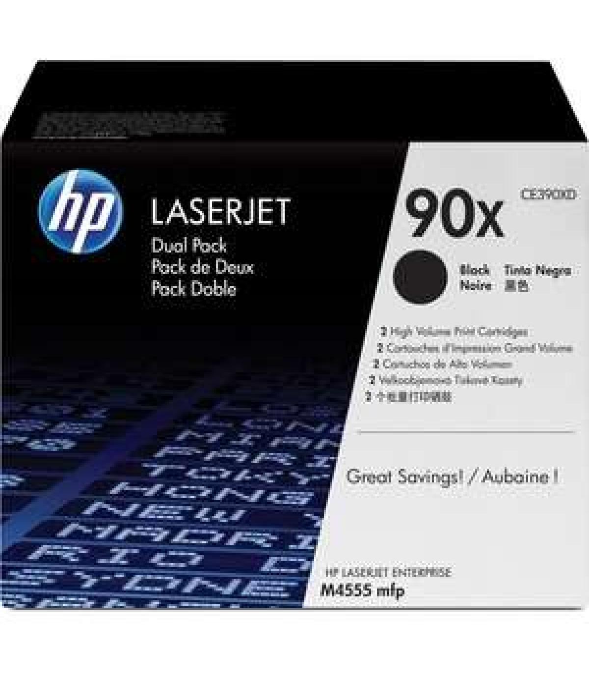 Multipack de 2 cartuchos de toner originales HP CE390X (90X) de alta calidad.