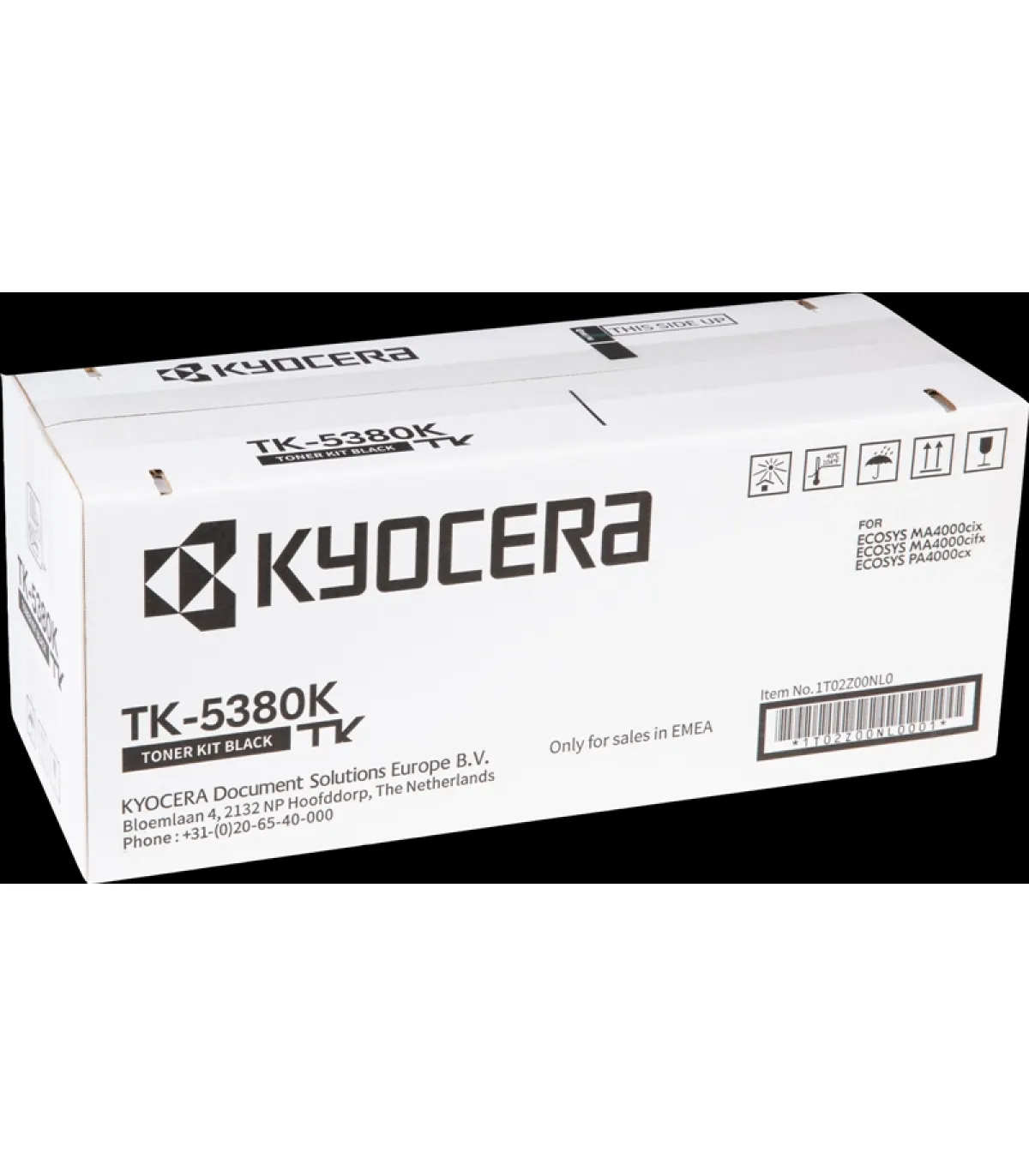 Cartucho de toner original Kyocera TK5380 (1T02Z00NL0/TK5380K) de alta calidad. Adecuado para uso en las siguientes impresoras: Kyocera ECOSYS MA4000cifx Kyocera ECOSYS MA4000cix Kyocera ECOSYS PA4000cx Rendimiento: 13.000 Páginas