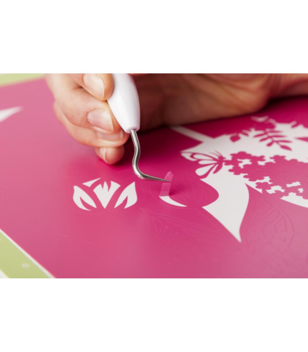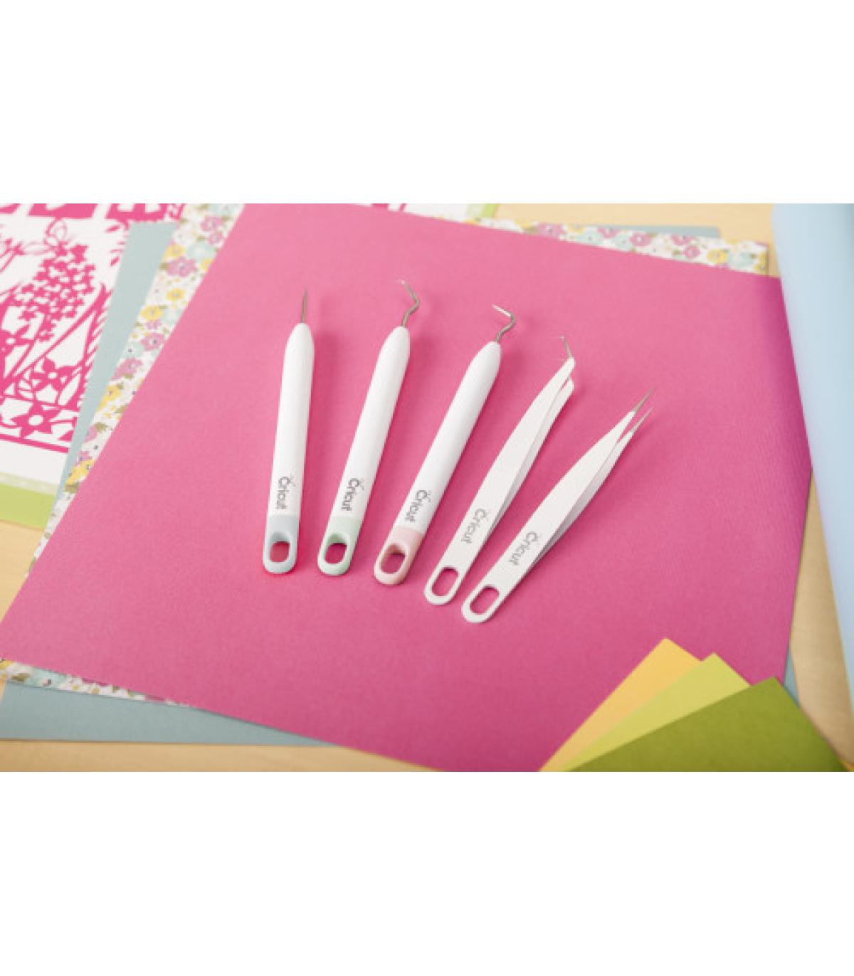 Si te encanta trabajar con diseños complejos, mandalas o tipografías finas, el Set de Herramientas de Pelado de Cricut (Ref. 2004233) es tu mejor aliado. Este kit de especialistas incluye: