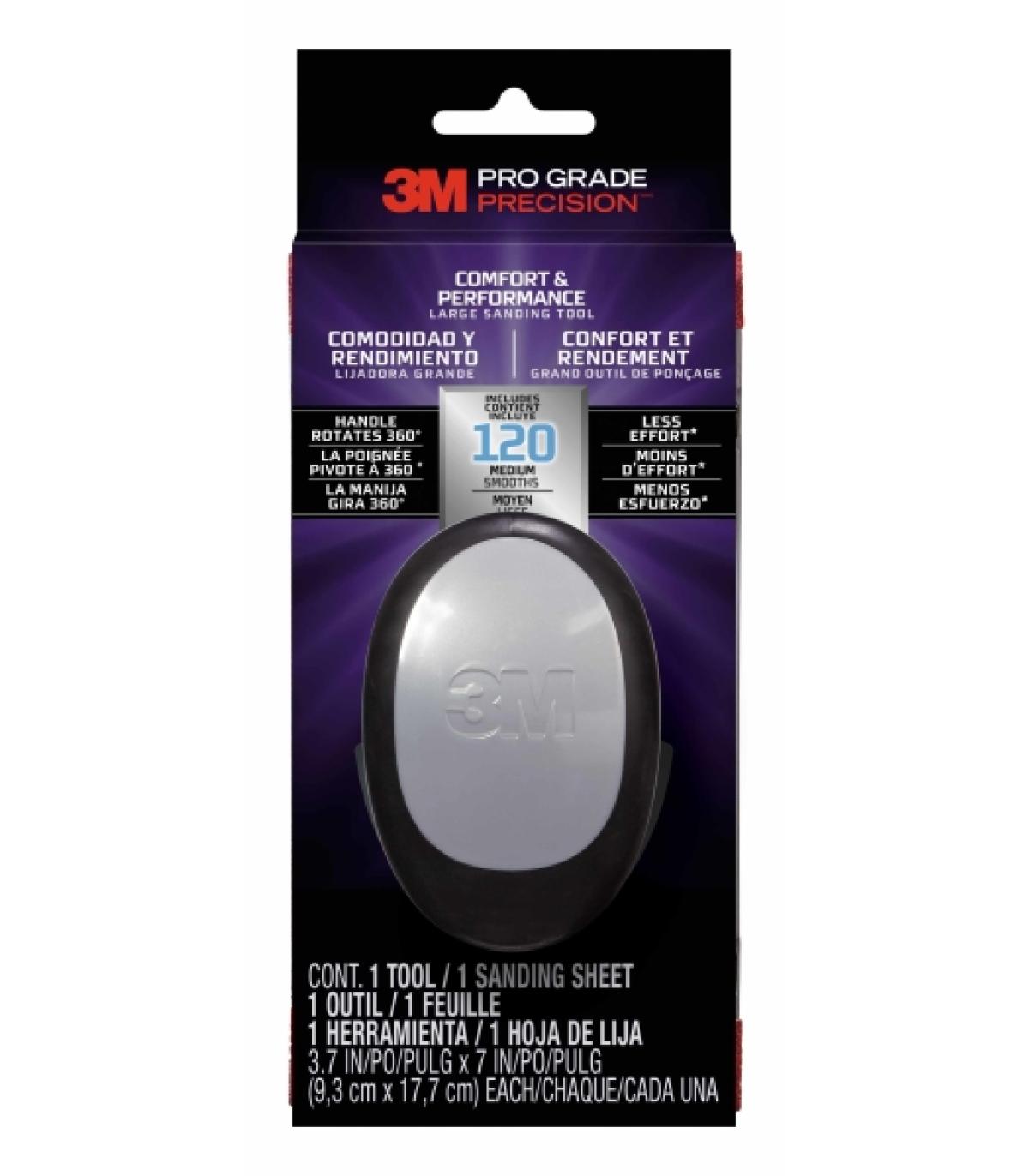 La herramienta de lijado grande 3M™ Pro Grade Precision™ Comfort and Performance es una solución eficiente y cómoda para realizar trabajos de lijado en superficies extensas y planas. Diseñada para ofrecer una experiencia de uso superior, esta herramienta combina facilidad de carga con un rendimiento de alta calidad, permitiendo obtener acabados suaves y uniformes en menos tiempo.