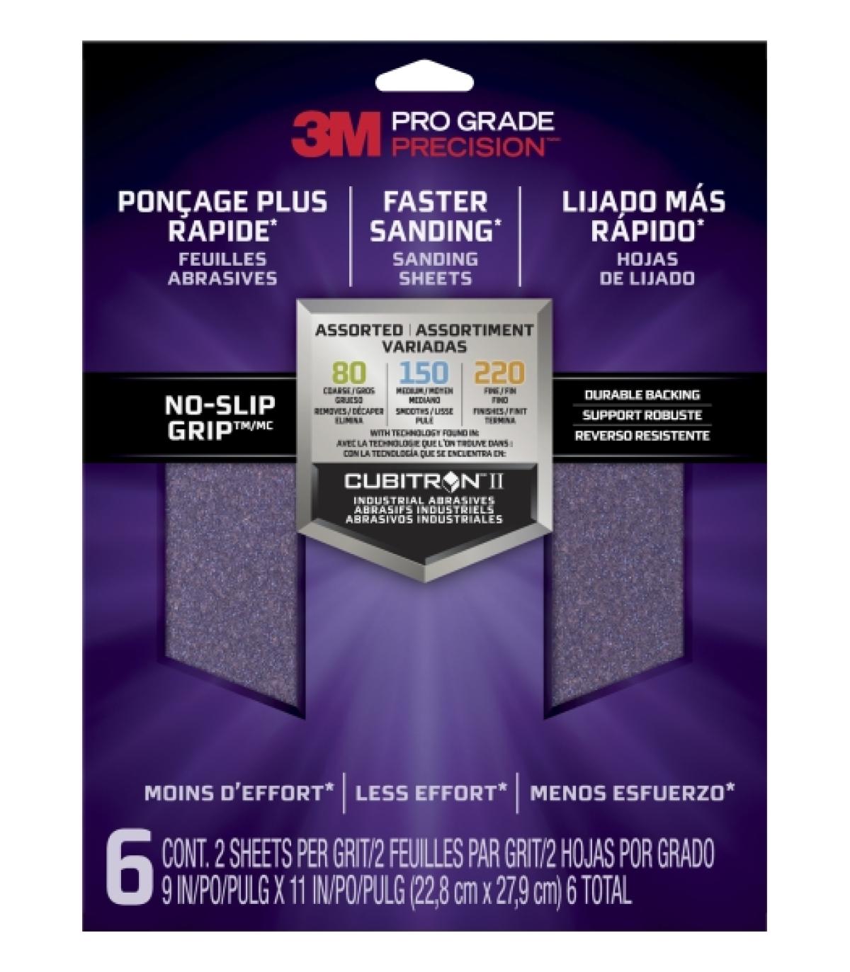 Las hojas de lijado más rápidas 3M™ Pro Grade Precision™ han sido mejoradas para ofrecer un rendimiento superior en tus tareas de acabado. Gracias a la innovadora combinación del reverso NO-SLIP GRIP™ y la tecnología mineral de primera calidad presente en los abrasivos industriales CUBITRON™ II, estas hojas garantizan una mayor durabilidad, menor esfuerzo y reducción de la fatiga manual en comparación con el papel de lija convencional. Ideales para trabajos exigentes, proporcionan un acabado más uniforme y eficiente en menos tiempo.