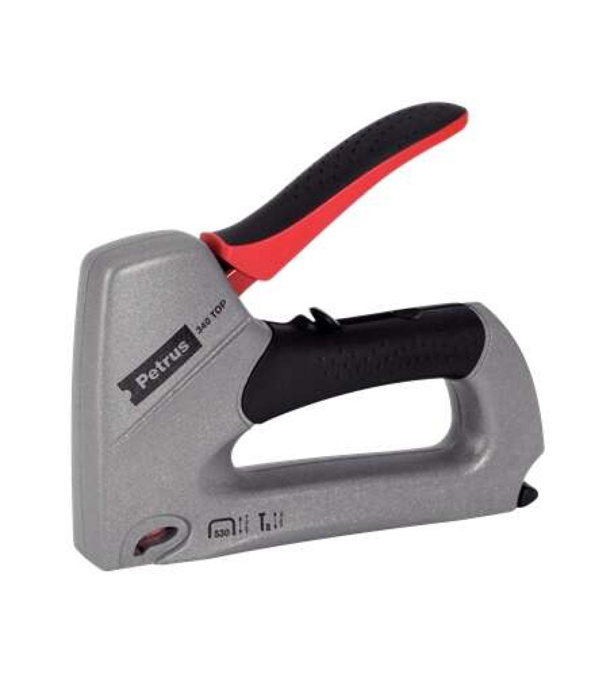 Petrus 295 Top Clavadora/Grapadora Metalica - Para Grapas 530/6 a 14mm y Pins Tipo 8 de 15mm - Ajuste de Potencia - Color Gris/N