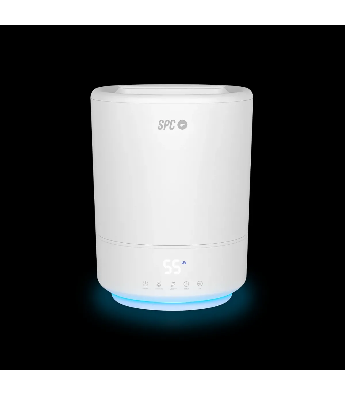 El humidificador SPC EVADNE elimina el 99,9% de las bacterias, virus y hongos para una humidificación higiénica. La Tecnología Ultravioleta Cleaning Advance incorporada purifica cada gota de agua que contiene el tanque antes de que salga al ambiente en forma de niebla.