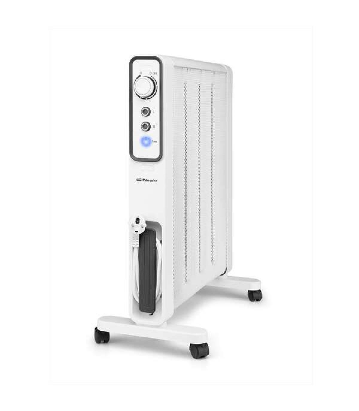 El radiador de mica RMN 2000 de Orbegozo, está pensado para quienes deciden tener un dispositivo atractivo para su hogar además de poderoso en cuanto a prestaciones y rendimiento. Tiene una potencia máxima de 2000 W y cuenta con una rápida convección y difusión del calor lo que permite calentar estancias un corto periodo de tiempo. Esta gama de radiadores obtiene su máximo rendimiento en un minuto y puede controlarse fácilmente gracias a sus dos potencias de calor (1000 y 2000W) y su termostato de temperatura ambiente. Ademas, gracias a las cuatro ruedas pivotantes multidireccionales, puedes mover tu radiador por casa sin apenas esfuerzo. Incluye un cómodo recogecables para recoger el aparato de forma sencilla. En Orbegozo nos preocupamos por tu bienestar, por eso nuestros radiadores están diseñados para funcionar de un modo silencioso, para que tu descanso nunca se vea afectado por ruidos indeseables. Igualmente, tu seguridad es primordial para nosotros: todos nuestros radiadores cuentan con un sistema de protección contra sobrecalentamiento que desconecta el aparato automáticamente en caso de que su temperatura se exceda por encima de lo habitual. Además, el radiador de mica RMN 2000 cuenta con un sistema de protección antivuelco que apaga el aparato automáticamente en caso de vuelco del mismo. El radiador de mica RMN 2000 de Orbegozo está diseñado para alcanzar un grado de rendimiento óptimo en muy poco tiempo con las ventajas de un funcionamiento eficiente.