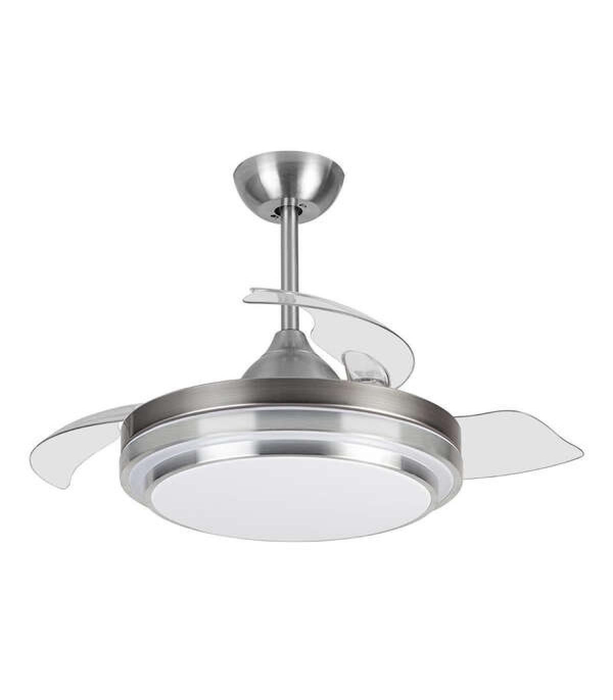 Ventilador de techo Diámetro: 105 cm Potencia 35 w 6 velocidades de ventilación Motor DC de bajo consumo y alta eficiencia 3 aspas retráctiles Muy silenciosoMANDO A DISTANCIA Luz LED 36 w Incluye cambio de sentido de giro en el mando a distancia