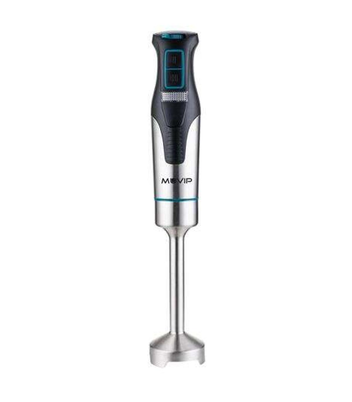 Muvip Batidora de Mano Inox 1200 Especificaciones: -Motor 1200W -2 Velocidades. Botón de cambio rápido - lento -Control de velocidad regulable -Cuerpo de acero inoxidable y de agradable tacto. -Varillas desmontables para fácil limpieza. -Luz Led -Cuchilla de acero inoxidable de 4 aspas -Incluye termostato de seguridad para protección del motor.
