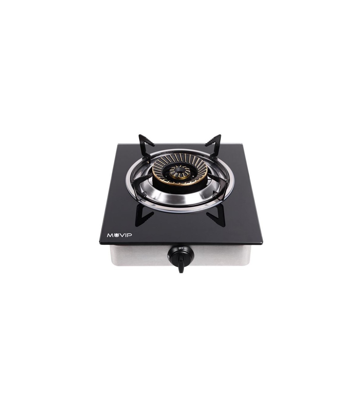 Muvip Cocina de Gas Inox 1 Fuego - Cristal Templado - Encendido Piezoelectrico - Quemador de Hierro Fundido Desmontable