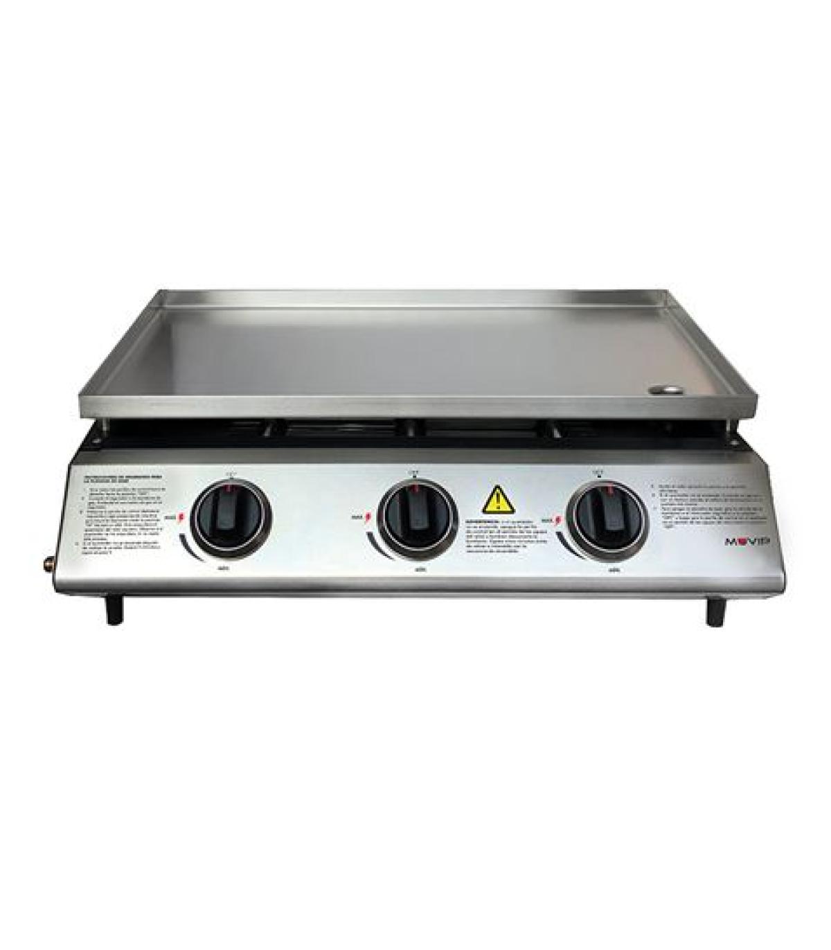 Muvip Plancha de Asar de Gas - 3 Quemadores - Panel de Control y Plancha de Acero - Bandeja Recoge Grasas - Llama Regulable - Su