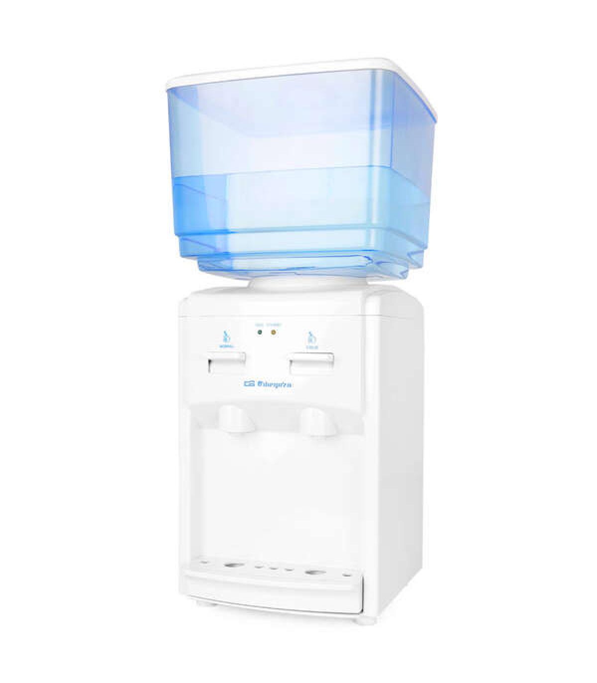 El dispensador de agua de la serie DA 5525 de Orbegozo no solo almacena agua, sino que la enfría. Un vaso de agua helada en una tarde calurosa es una ventaja de la que podremos disfrutar gracias a las excelentes prestaciones de este equipo. Este dispensador de agua tiene capacidad para almacenar siete litros. De esa cantidad puede enfriar 1.5 litros cada hora en su depósito refrigerante. Su potencia es de 70 W y la capacidad de enfriamiento está entre los 8 y los 15 grados. El DA 5525 cuenta con indicadores luminosos de encendido y agua fría. También ofrece entre sus accesorios una bandeja recoge gotas extraíble, para una mayor limpieza. Es una gran ventaja poder contar con agua fría y de calidad en casa. El dispensador de aguas serie DA 5525 de Orbegozo pondrá un punto refrescante en tu hogar.