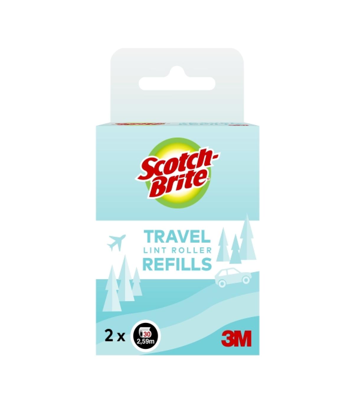 Los recambios del rodillo quitapelusas de viaje Scotch-Brite™ sirven para el rodillo quitapelusas de viaje Scotch-Brite™ compacto. Están disponibles en un pack de 2 rodillos y tienen 30 hojas cada uno.