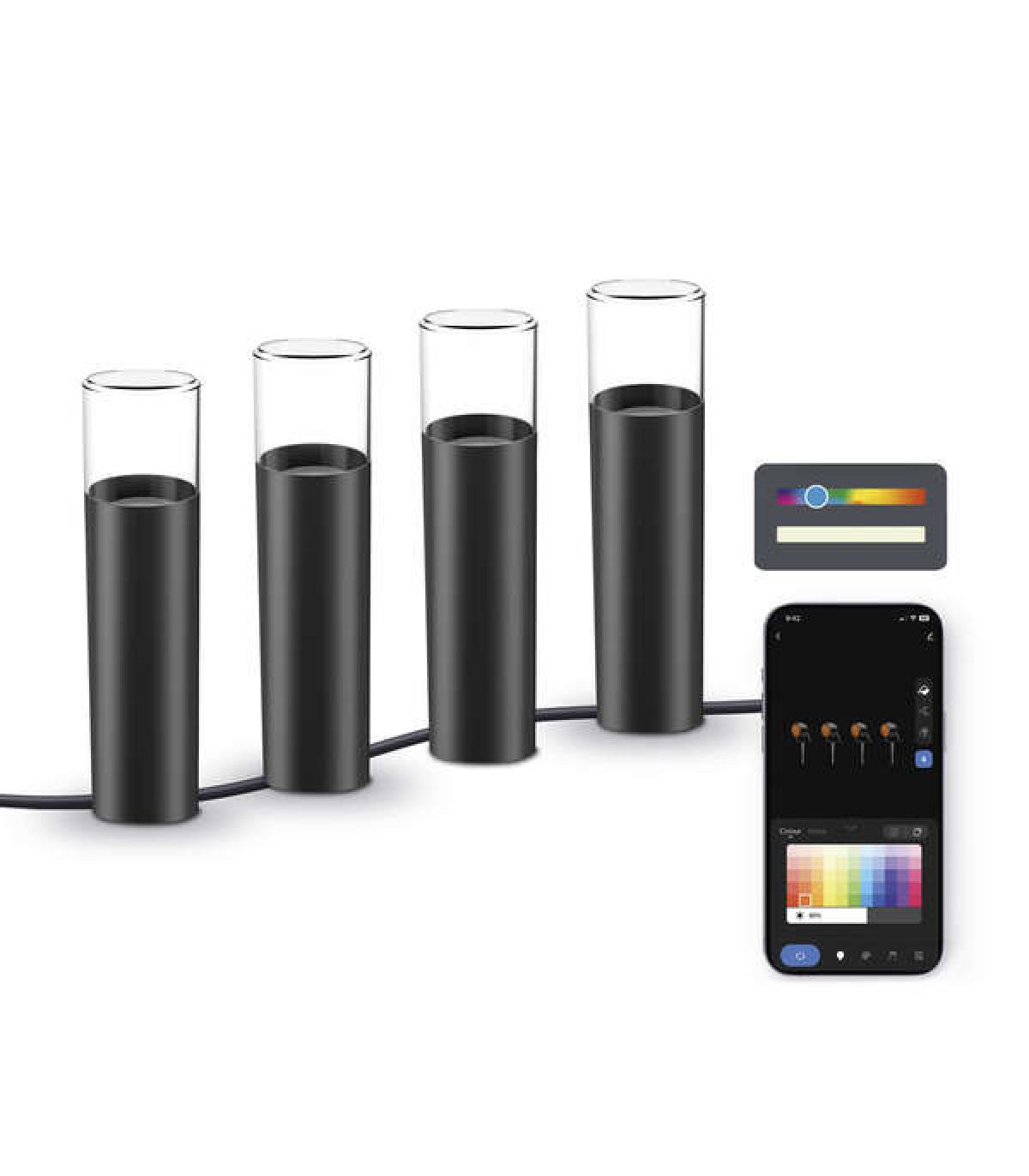 -Sus 200 lúmenes, sus 12W de potencia y la tecnología RGBWIC de estas balizas te permitirán jugar con los millones de posibilidades de colores RGB y sus intensidades de la manera que tú prefieras. Sincroniza varios colores a la vez o escoge luz blanca de 3000K y consigue ambientes únicos para tu jardín. ¡Tú eliges como iluminarlo!