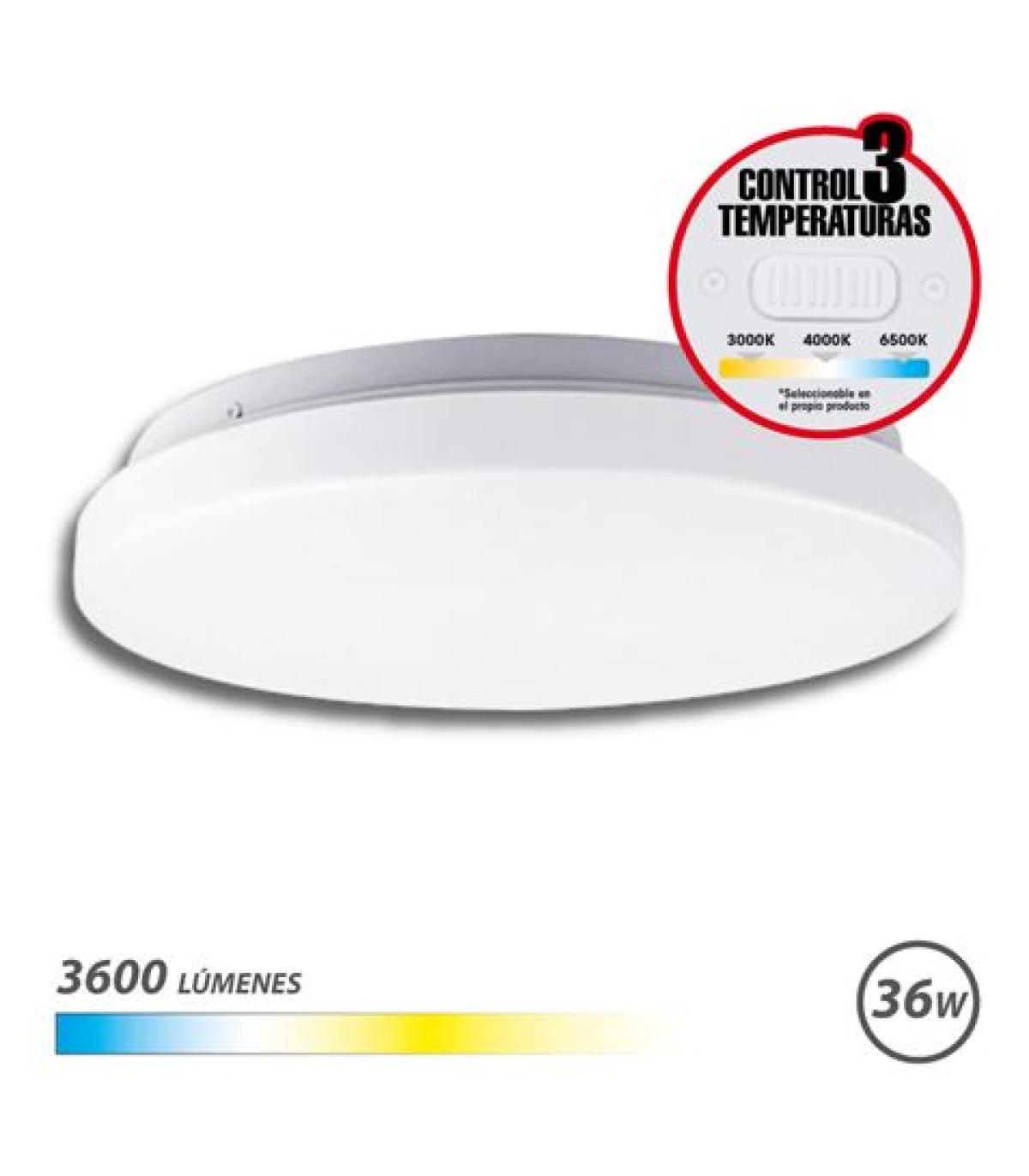 Elbat Aplique LED Techo Redondo 36W - 3600Lm - Selector 3 Temperaturas - Color Blanco