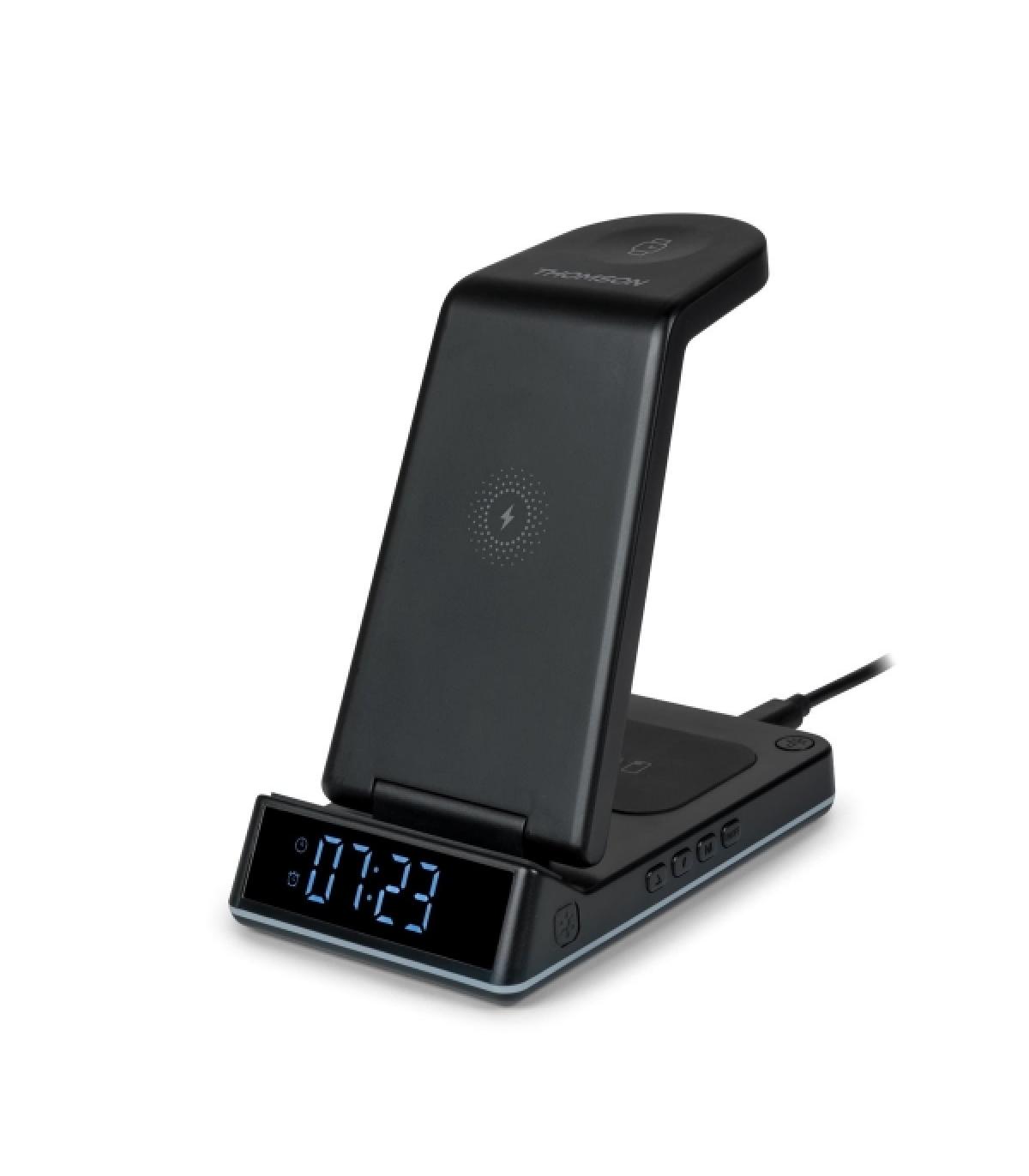 Thomson Reloj Despertador con Estacion de Carga Inalambrica para Smartphone, iWatch y Auriculares