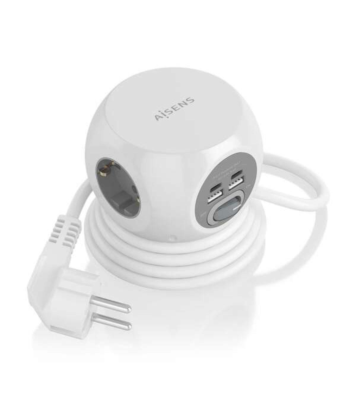 Aisens Regleta de Enchufes Sobremesa Multifuncion con 3 Tomas + 2xUSB-C - 2xUSB-A - 1.4m - Color Blanco