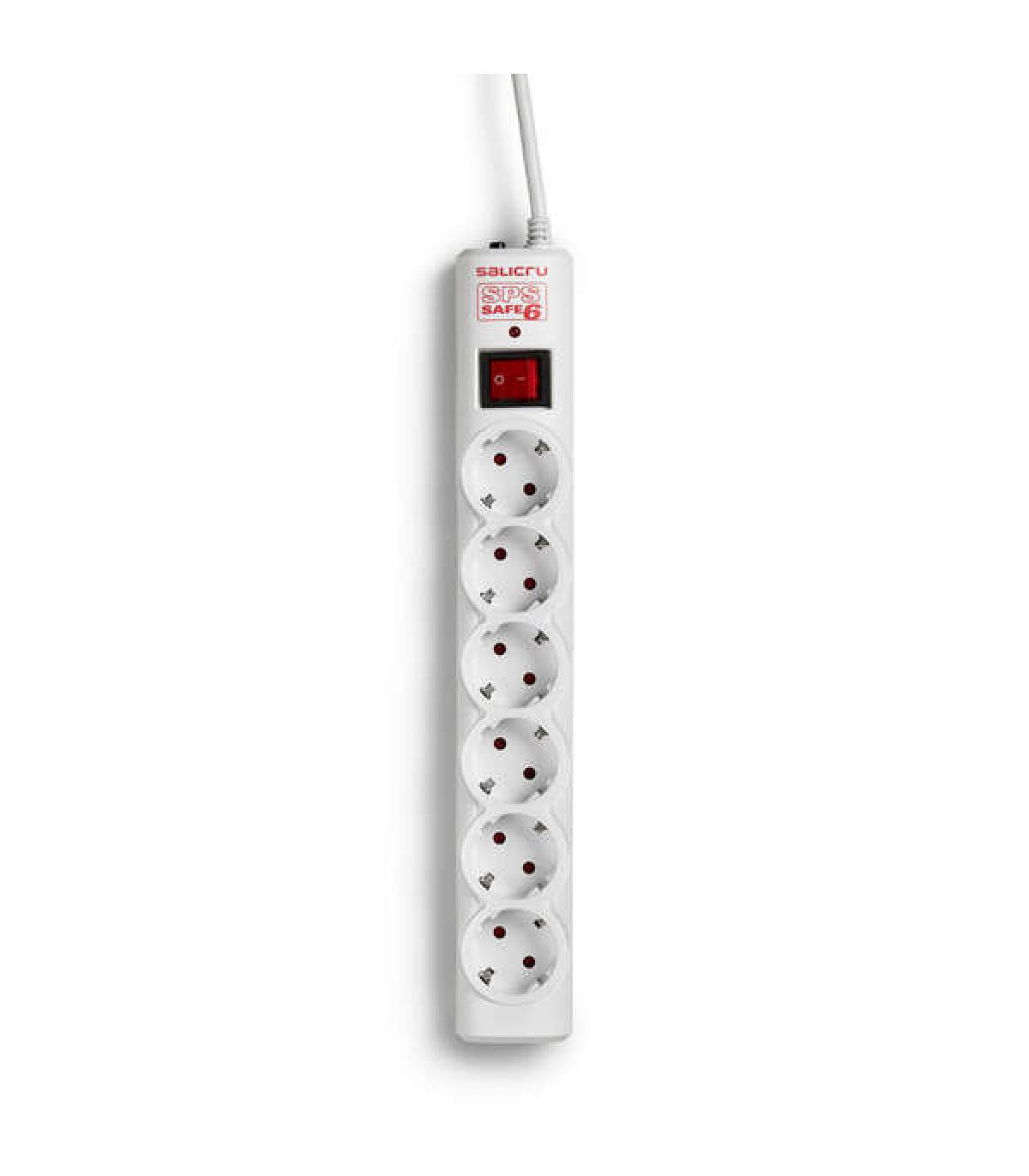 La regleta Salicru SPS SAFE 6 es un protector eléctrico de última generación con 6 tomas Schuko. Cuenta con una protección rearmable y una disipación máxima de energía de 380J. Además, tiene un interruptor de encendido/apagado, protección infantil en las tomas y tomas orientadas para una fácil conexión. Su grado de protección es IP20.