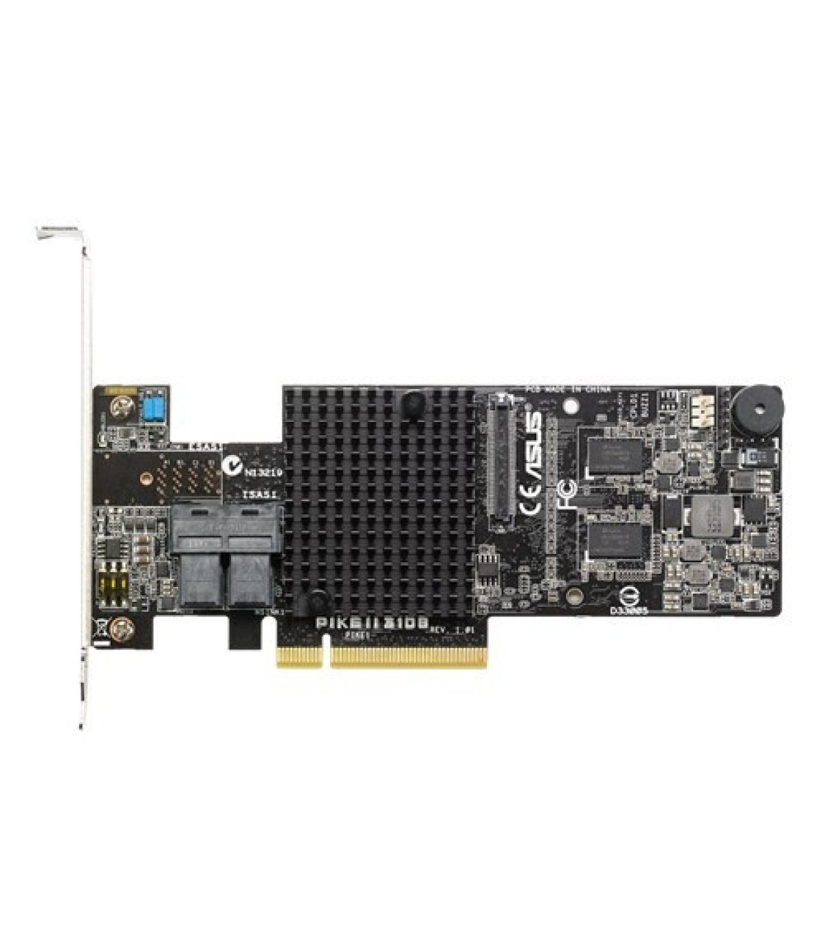ASUS PIKE II 3108-8i/16PD. Interfaces de disco de almacenamiento soportados: SAS, Serial ATA II, Serial ATA III, Interfaz de host: PCI Express. Niveles RAID: 0, 1, 5, 6, 10, 50, 60, Velocidad de transferencia de datos: 12 Gbit/s, Memoria interna: 1000 MB. Ancho: 152,4 mm, Altura: 50,8 mm
