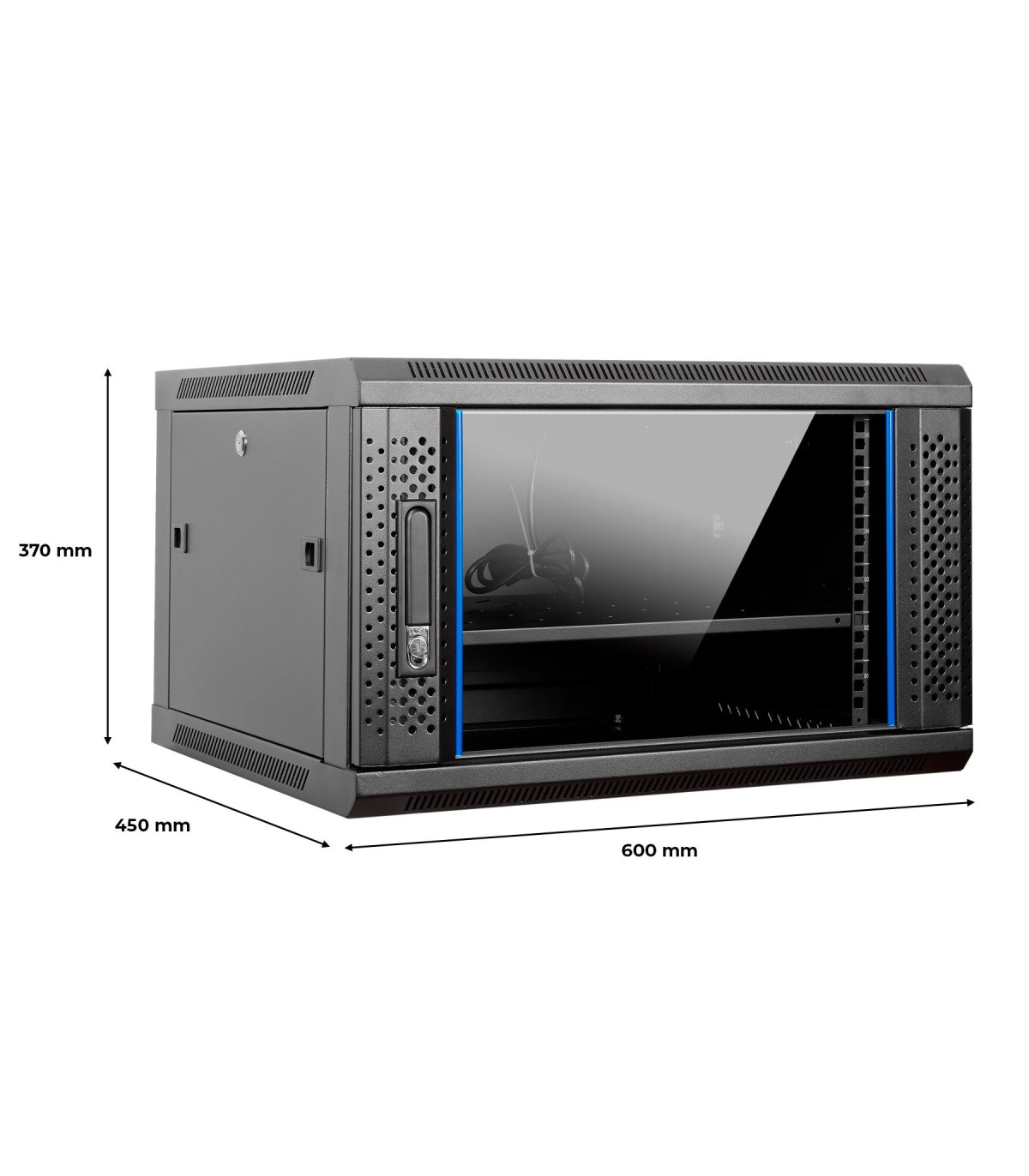 Aiten Data AI6406 Armario Mural 6U Fondo 450 - Puerta de Cristal - Cerradura de Seguridad - Incluye Bandeja Fija y Ventilador 12