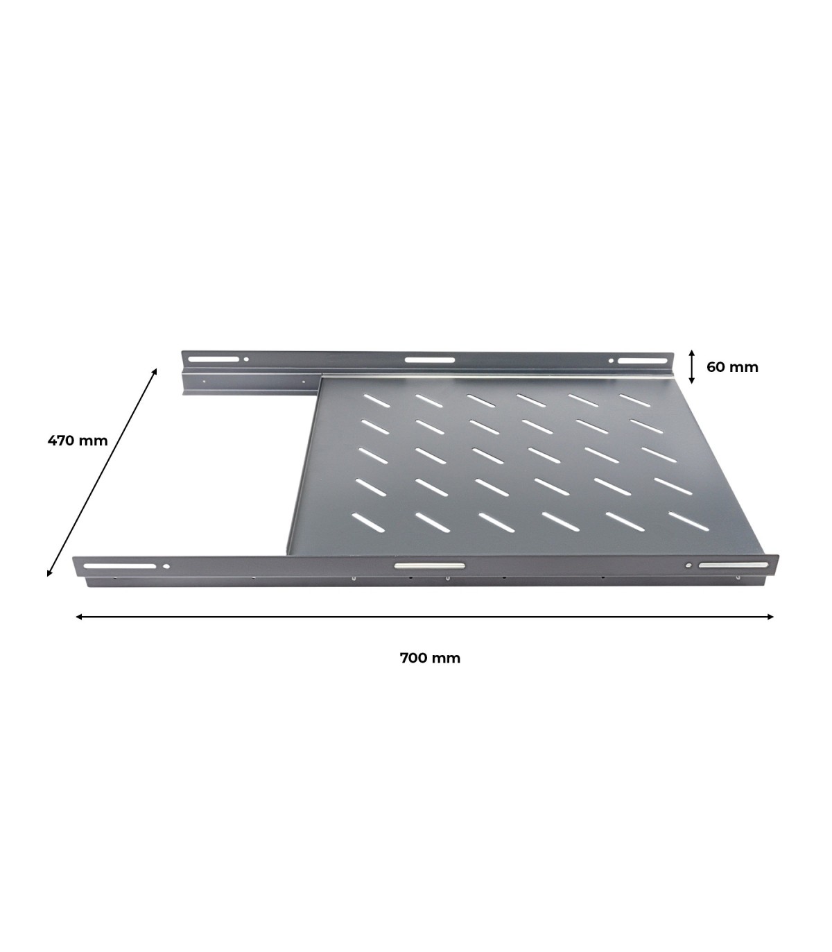 Aiten Data presenta varias medidas de bandejas deslizantes de 1U: 450 mm, 600 mm, 800 mm y 1000 mm, que se ajustan a las necesidades de fondo requerido. El ancho siempre es estándar, de 19". En la superficie plana poseen ranuras que facilitan la ventilación de los aparatos que sustentan y en los laterales disponen de anclajes de fijación deslizantes extraíbles, que permieten manipular cómodamente el contenido. Están fabricadas en acero laminado en frío de 1.2 mm con acabado en pintura negra antióxido y recubrimiento en polvo. Materiales y Acabado - 1.2 mm Acero laminado en frío - Recubrimiento en polvo.