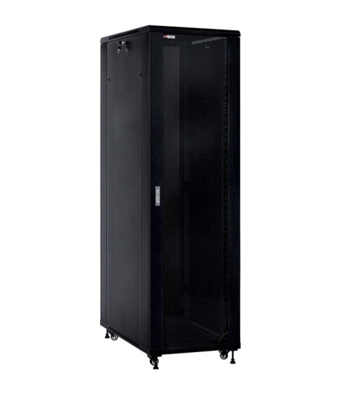 La puerta delantera y trasera de acero perforada, el armazón de acero de 2 mm, los cierres (también en los paneles laterales desmontables), las 4 ruedas y las 4 patas de nivelación convierten esta serie en una solución sencilla y con todo lo necesario para su instalación.