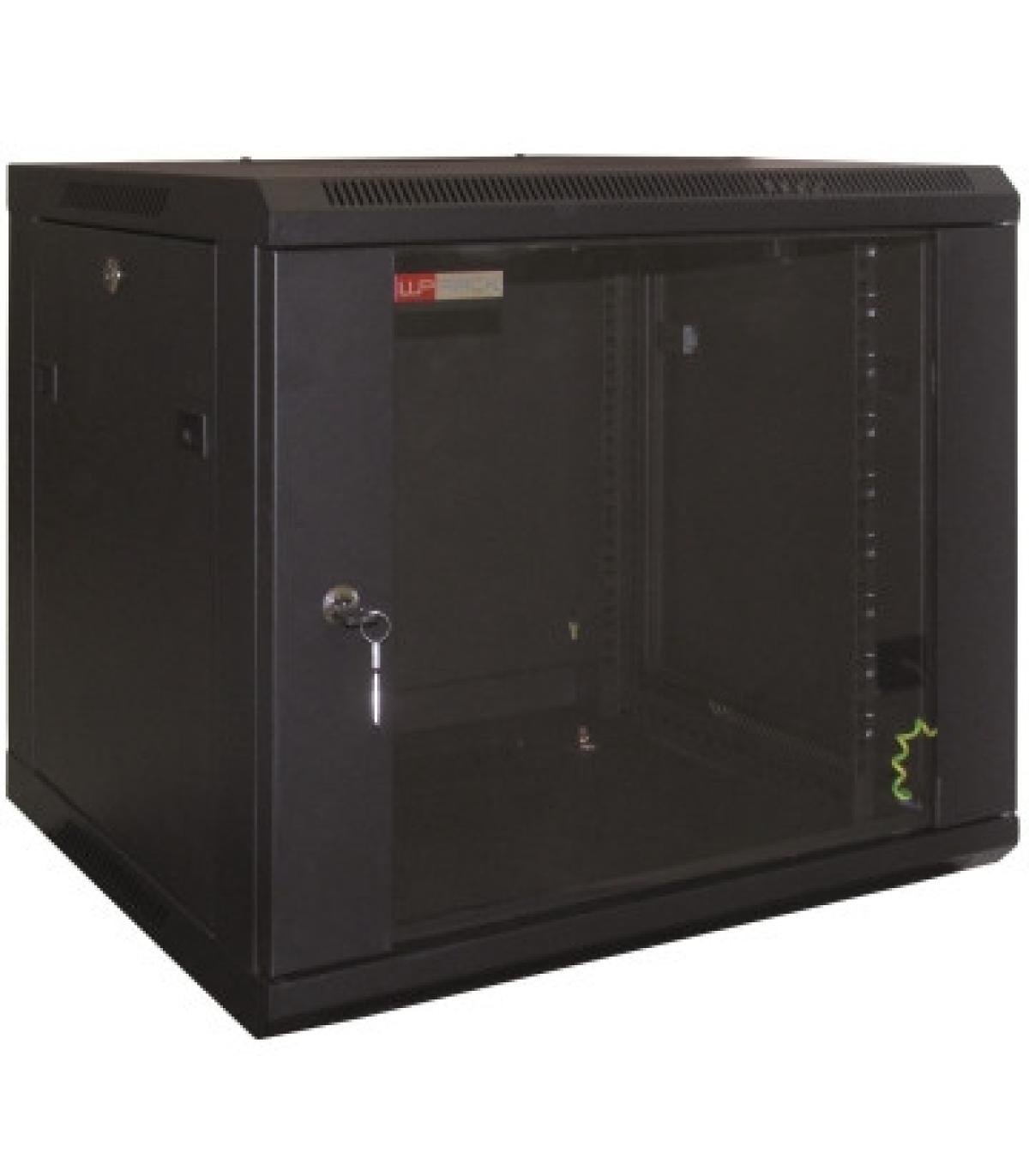 El armario bastidor de pared serie RWB es la solución óptima para instalaciones de pequeño/mediano tamaño que requieren tanto calidad como seguridad.La puerta de cristal templado, el armazón soldado, la resistente y segura estructura y los cierres (también en los paneles laterales desmontables) son sólo algunas de las características principales de esta serie de armarios para redes.\n- Estructura de acero sólido de 1,5 mm\n- Su puerta de cristal templado se abre en un ángulo de 180° y dispone de cierre y llave\n- Se puede cambiar la dirección de apertura de la puerta según sea necesario\n- Paneles laterales desmontables, además de cierre y llave, para una fácil instalación del equipo\n- Entrada de cable tanto en la parte superior como en la inferior (con tapa)\n- Carcasa para ventiladores de 120 mm o kits de ventilación especiales en la parte superior.\n- Soporta una capacidad de hasta 60kg\n- Completo con 4 puntales con profundidad ajustable\n- Kit para el montaje en el suelo incluido\n- Dimensiones An x Pr x Al: 600x600x635mm\n- 12 sets de tornillos incluidos (tornillos + tuercas enjauladas)\n- Color: Negro, RAL 9005\n- Unidad: 12\n- Clase de protección IP 20