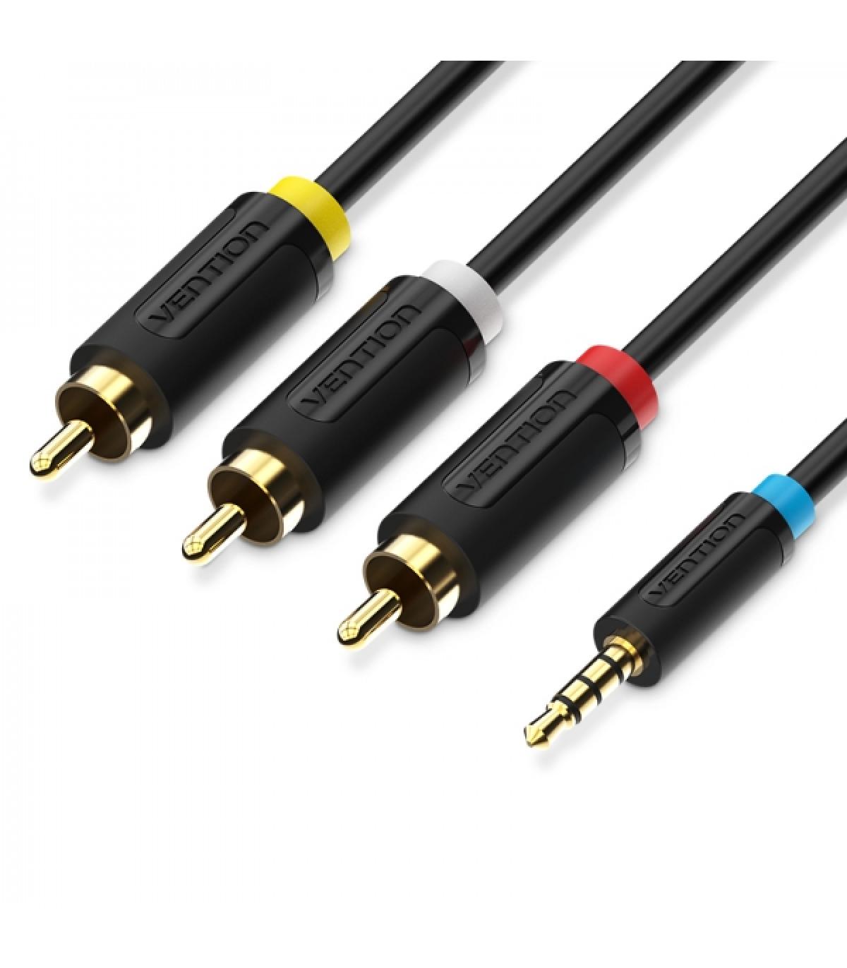 Cable de conexión estéreo de 3,5 mm a 3RCA - 1,5m - Color Negro