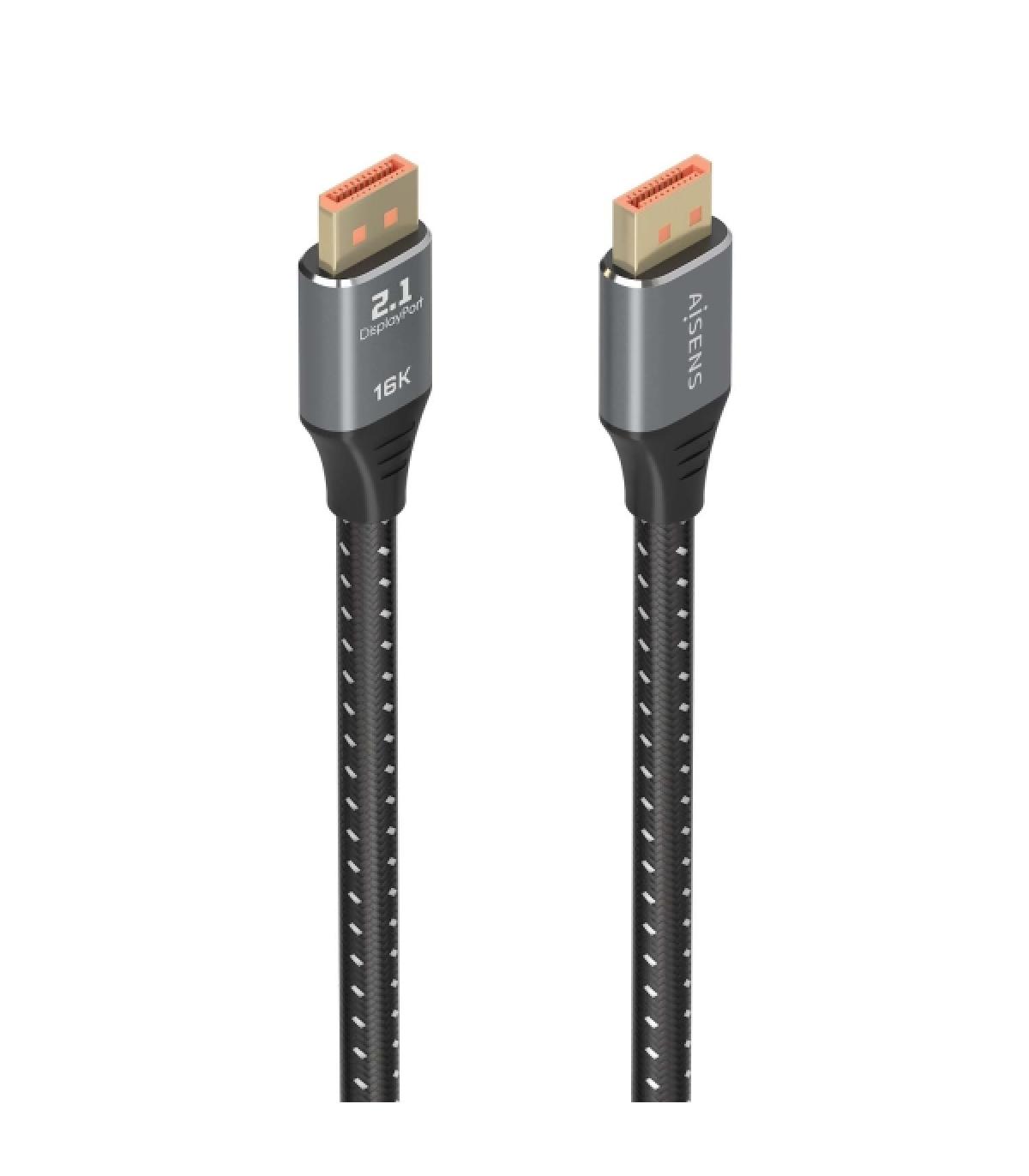 Cable DISPLAYPORT V2.1 16K con conector DP macho (20 pines) en ambos extremos.