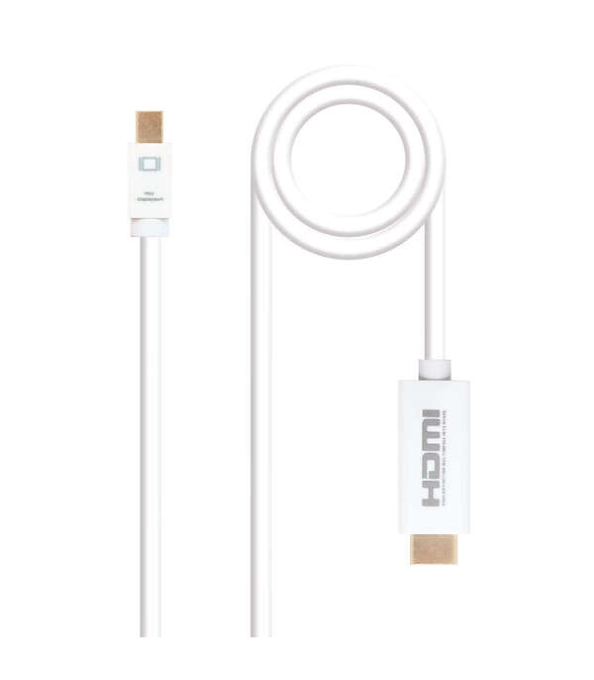 Cable conversor MINI DP macho en un extremo y HDMI macho en el otro.