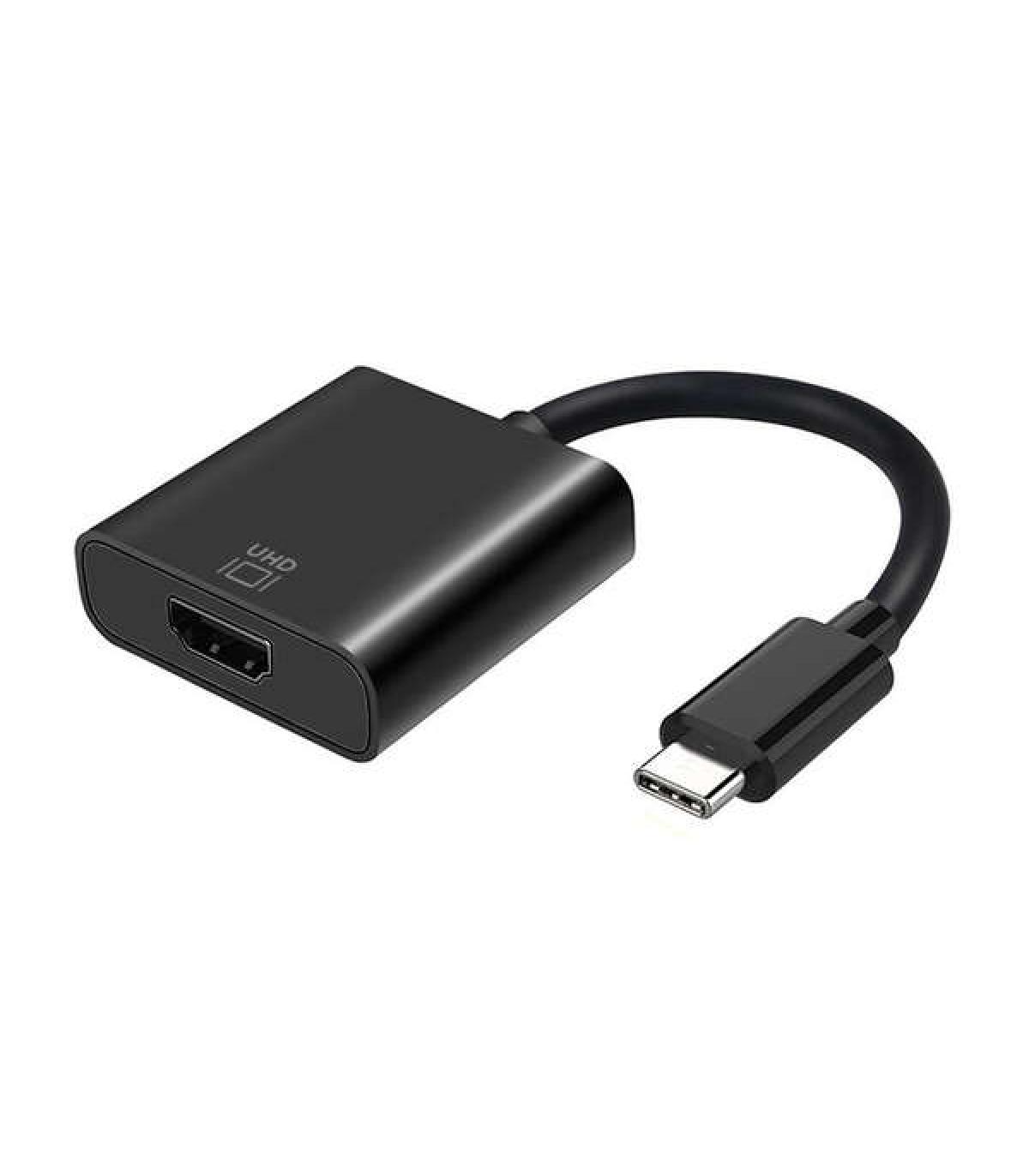 Conversor USB-C a HDMI 2.0, con conector USB-C macho en un extremo y HDMI 4K 2.0 hembra en el otro.