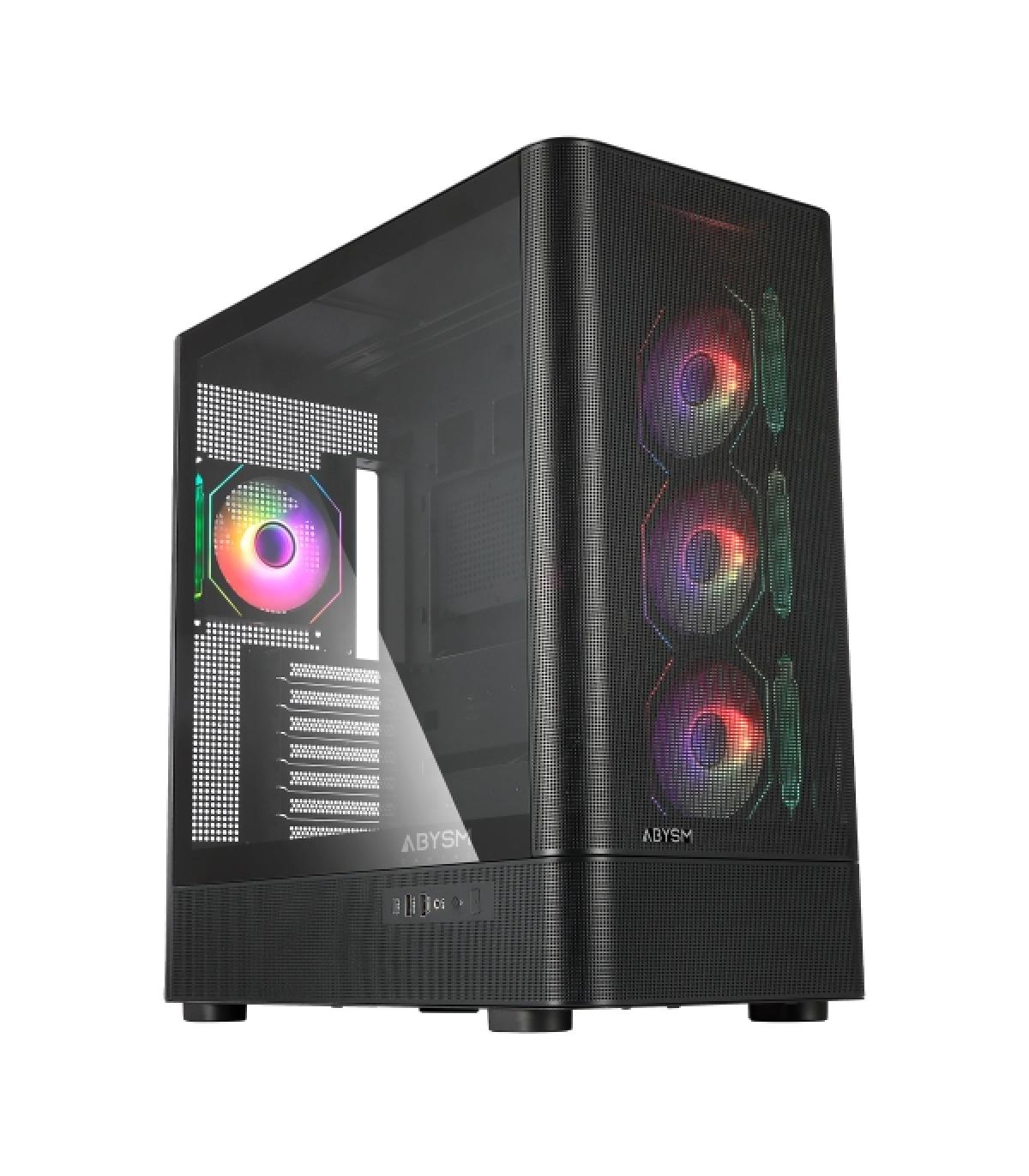 La ventana lateral de cristal templado exhibe con orgullo el interior de tu configuración, y su panel frontal de rejilla optimiza el flujo de aire, garantizando una refrigeración eficiente para los componentes más exigentes.