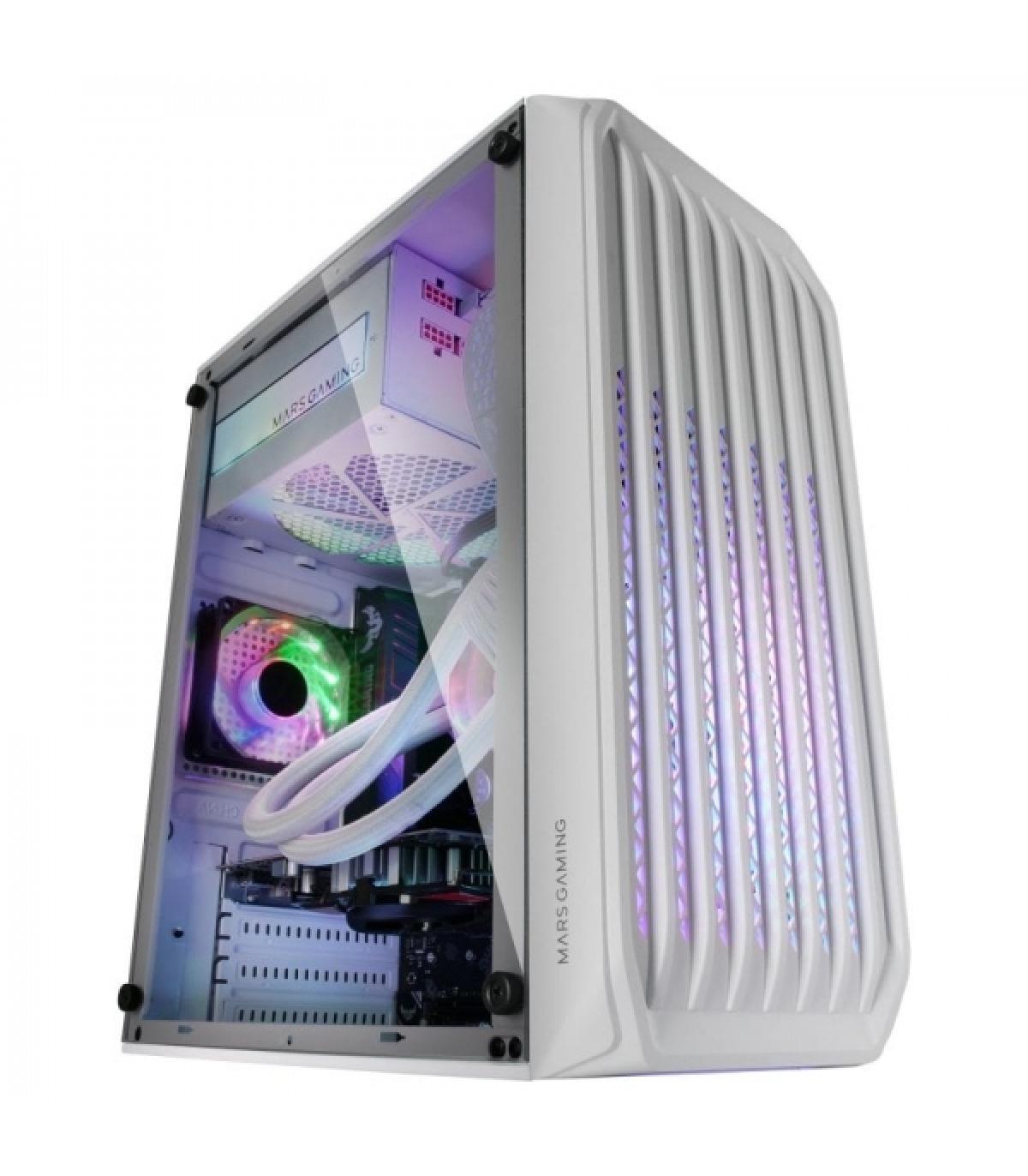 La caja compacta gaming MC-S2 ofrece un rendimiento de refrigeración sobresaliente gracias a sus dos ventiladores FRGB y su panel frontal con diseño de rejilla, además de soporte para refrigeraciones líquidas de hasta 240 mm. Esta caja redefine la eficiencia en espacios reducidos, transformando radicalmente tu escritorio con su tamaño ultra compacto.