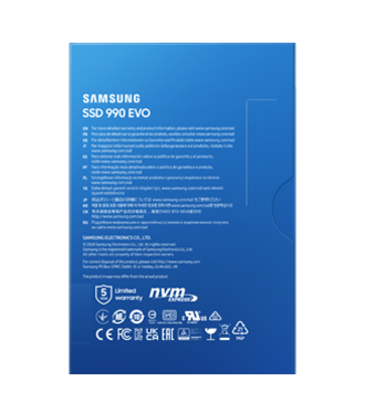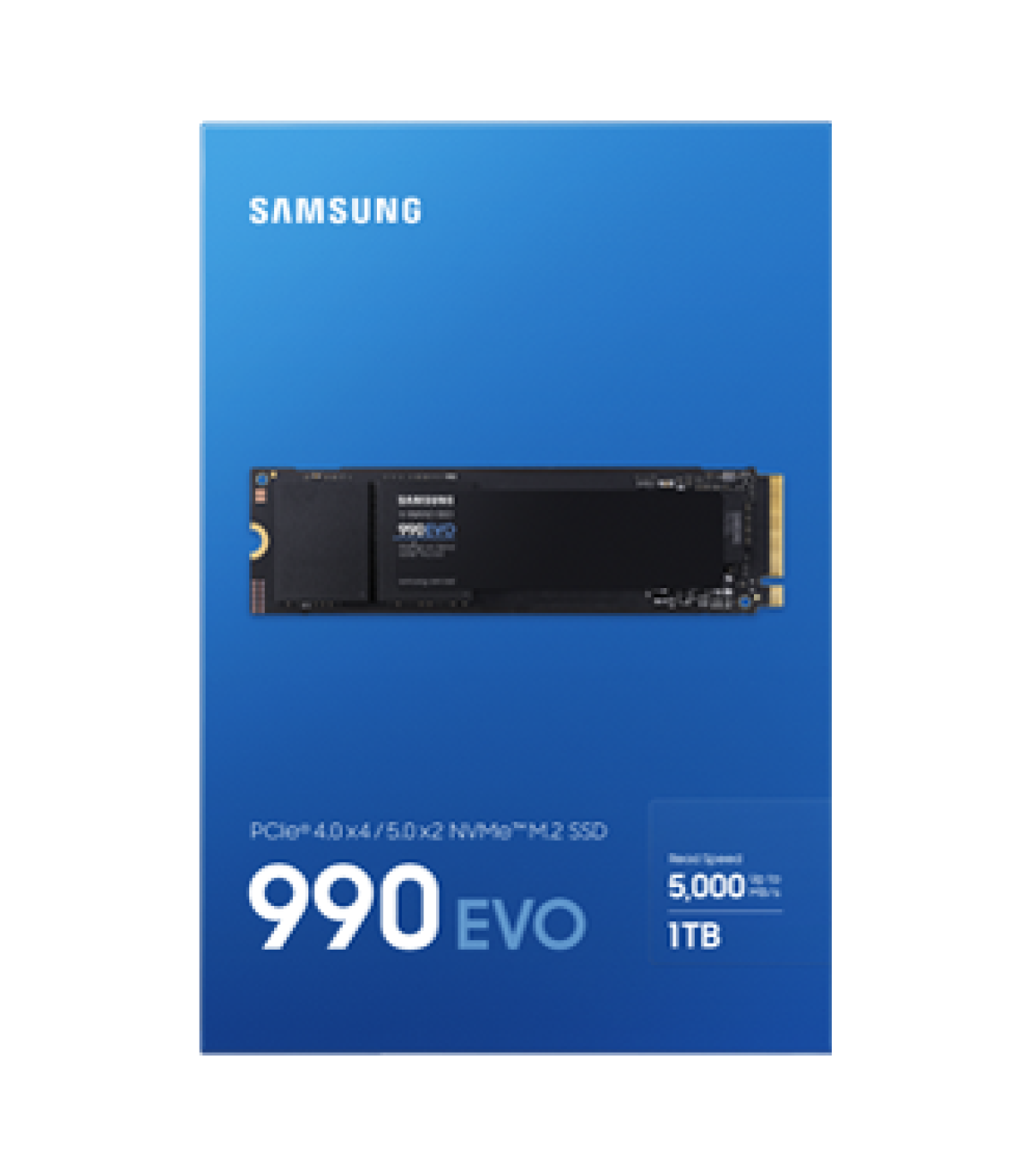 Samsung 990 EVO. SDD, capacidad: 1 TB, Factor de forma de disco SSD: M.2, Velocidad de lectura: 5000 MB/s, Velocidad de escritura: 4200 MB/s, Componente para: Universal