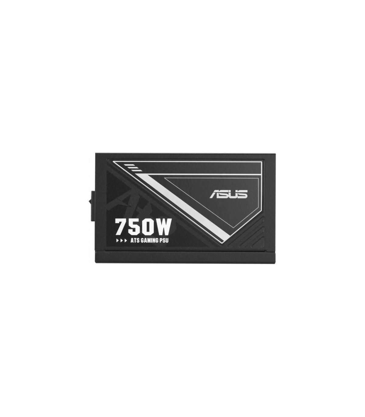ASUS ATS-750G. Potencia total: 750 W, Voltaje de entrada AC: 110 - 240 V, Corrección del factor de potencia tipo (PFC): Activo. Alimentador de energía para tarjeta madre: 20+4 pin ATX, Longitud del cable de alimentación de la placa base: 55 cm, Longitud del cable de alimentación SATA: 120,400 mm. Utilizar con: PC, Factor de forma de fuente de alimentación (PSU): ATX, Certificación 80 PLUS: 80 PLUS Gold. Color del producto: Negro, Tipo de enfriamiento: Activo, Número de ventiladores: 1 Ventilador(es). Certificados de conformidad: RoHS