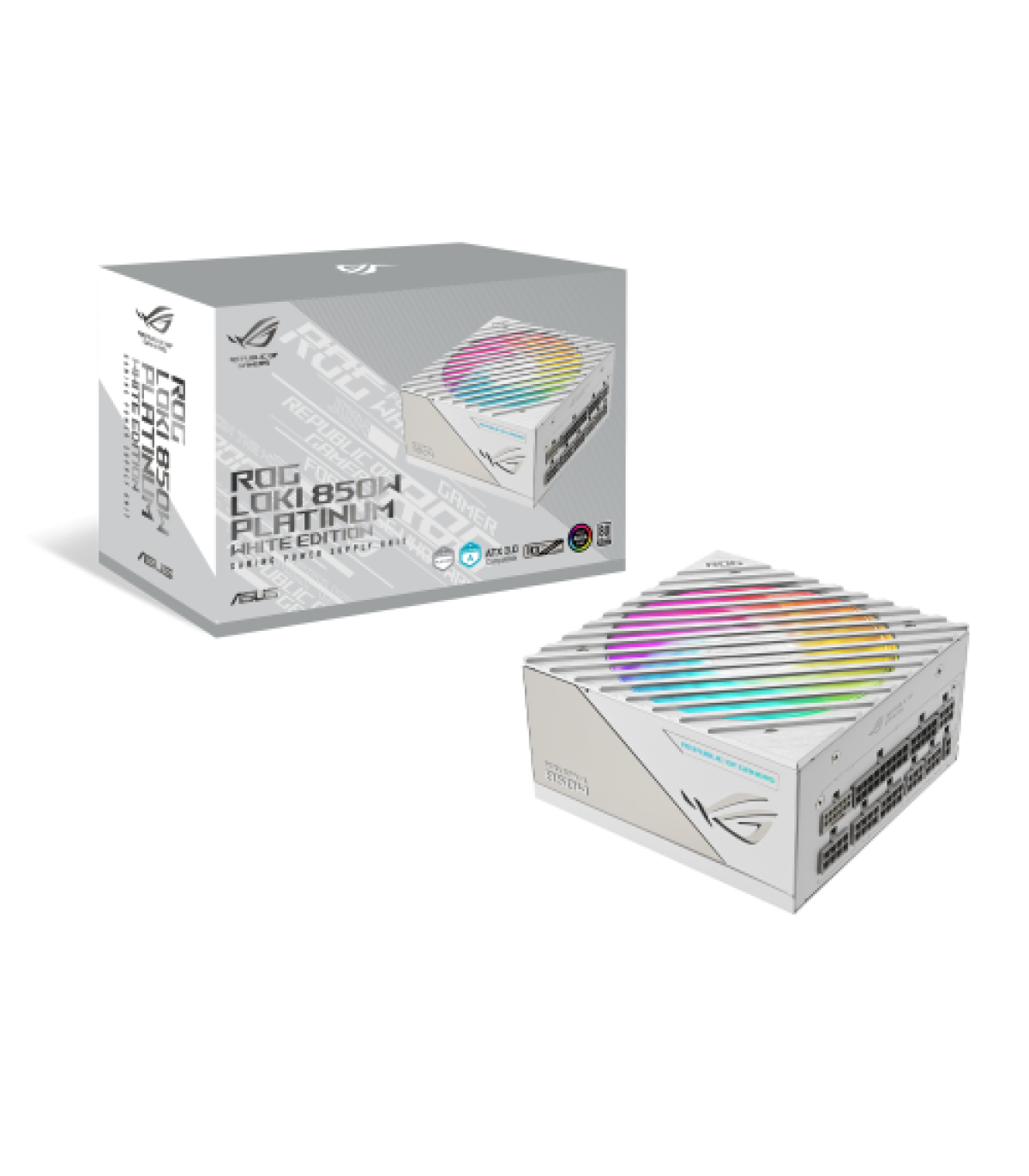 ASUS ROG Loki SFX-L 850W Platinum White. Potencia total: 850 W, Voltaje de entrada AC: 100 - 240 V, Potencia combinada (3,3 V): 110 W. Alimentador de energía para tarjeta madre: 24-pin ATX, Longitud del cable de alimentación de la placa base: 45 cm, Longitud del cable de alimentación SATA: 600 mm. Utilizar con: PC, Factor de forma de fuente de alimentación (PSU): SFX-L, Certificación 80 PLUS: 80 PLUS Platinum. Color del producto: Blanco, Tipo de enfriamiento: Activo, Diámetro de ventilador: 12 cm. Ancho: 125 mm, Profundidad: 125 mm, Altura: 63,5 mm