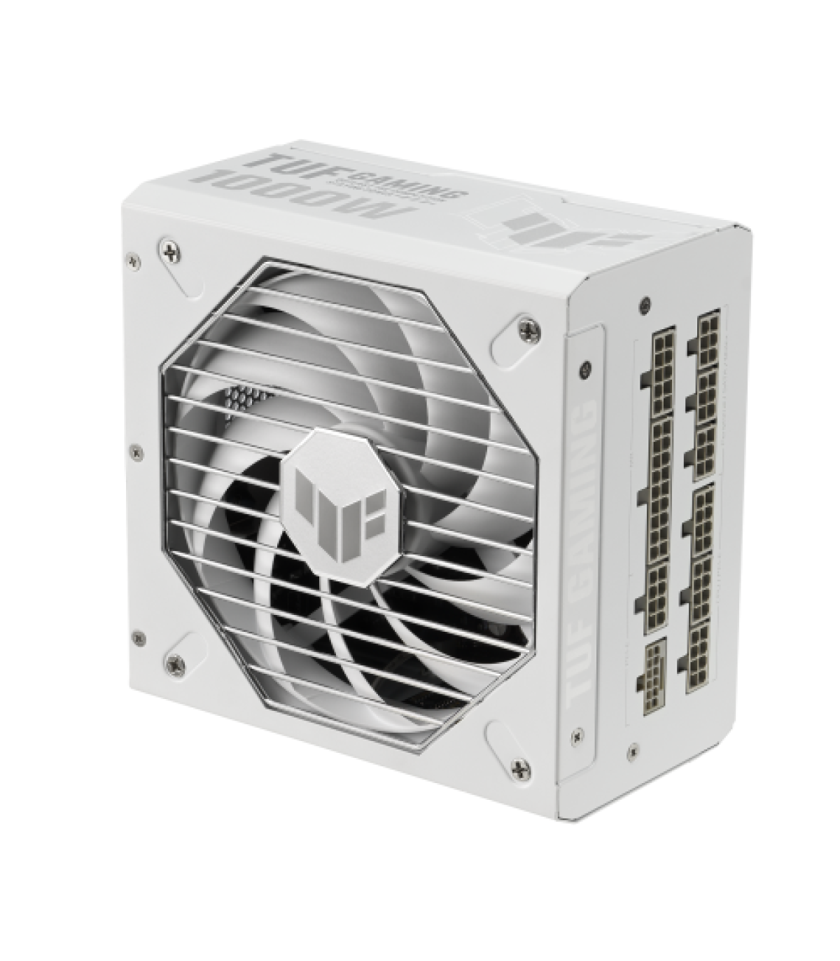 ASUS TUF Gaming 1000W Gold White Edition. Potencia total: 1000 W, Voltaje de entrada AC: 100 - 240 V, Corrección del factor de potencia tipo (PFC): Activo. Alimentador de energía para tarjeta madre: 20+4 pin ATX, Longitud del cable de alimentación de la placa base: 61 cm, Longitud del cable de alimentación SATA: 120,400 mm. Utilizar con: PC, Factor de forma de fuente de alimentación (PSU): ATX, Certificación 80 PLUS: 80 PLUS Gold. Color del producto: Blanco, Tipo de enfriamiento: Activo, Diámetro de ventilador: 13,5 cm. Cables incluidos: Corriente alterna, CPU, PCIe, Peripheral (Molex), SATA