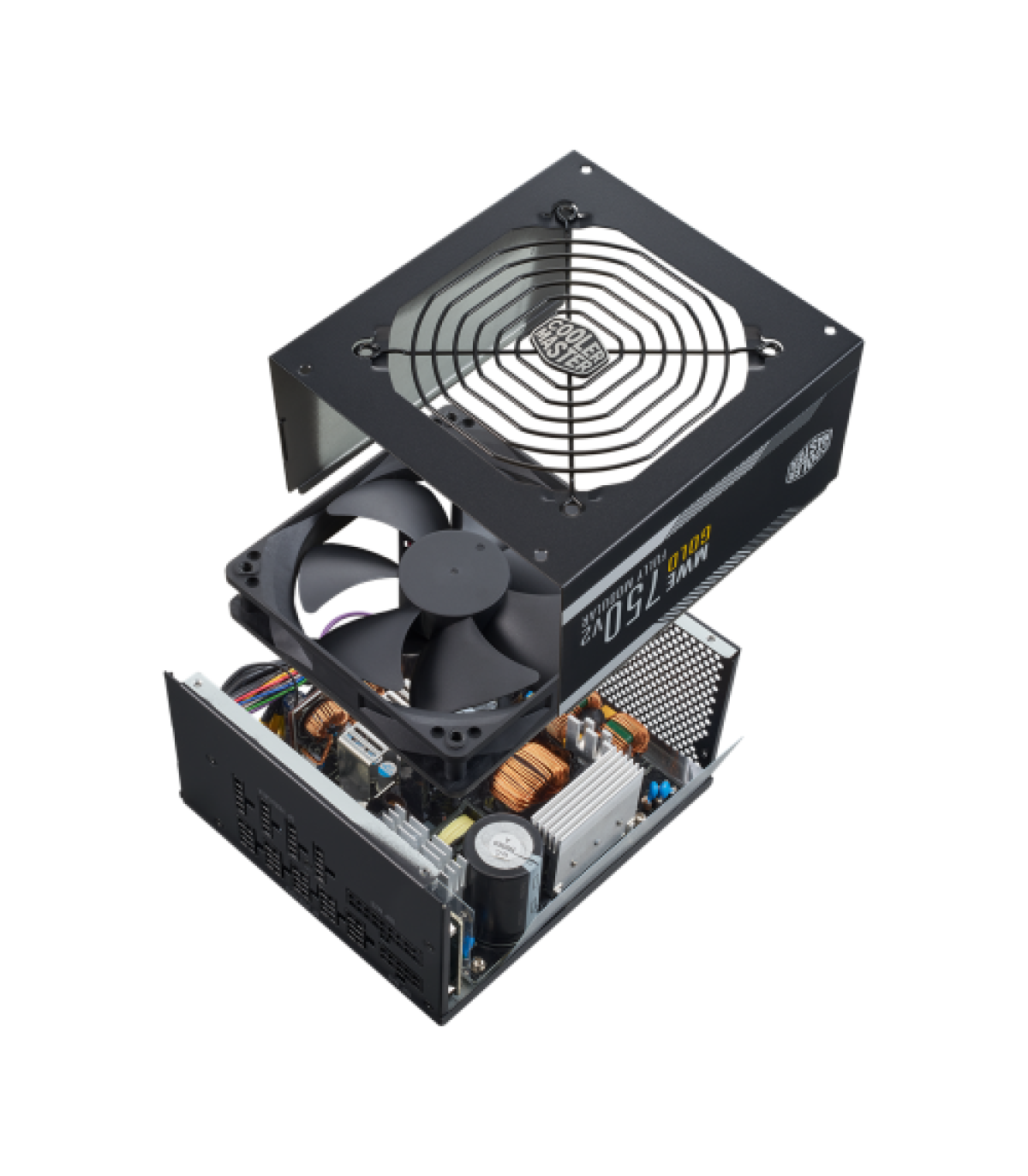 Cooler Master MWE Gold 750 V2 ATX 3.0 Ready. Potencia total: 750 W, Voltaje de entrada AC: 100 - 240 V, Frecuencia de entrada AC: 50/60 Hz. Alimentador de energía para tarjeta madre: 24-pin ATX, Longitud del cable de alimentación de la placa base: 61 cm, Longitud del cable de alimentación SATA: 500,620,740,860 mm. Utilizar con: PC/servidor, Factor de forma de fuente de alimentación (PSU): ATX, Certificación 80 PLUS: 80 PLUS Gold. Color del producto: Negro, Tipo de enfriamiento: Activo, Diámetro de ventilador: 12 cm. Ancho: 150 mm, Profundidad: 160 mm, Altura: 86 mm