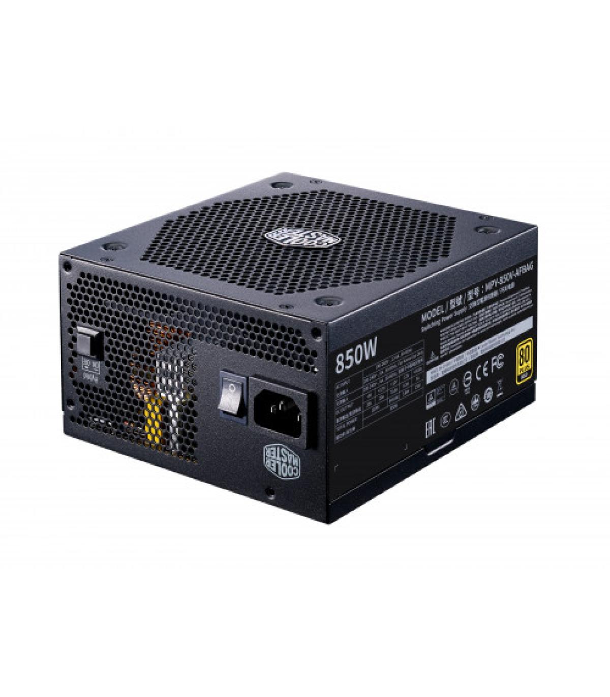 Cooler Master V850 Gold-V2. Potencia total: 850 W, Voltaje de entrada AC: 100 - 240 V, Frecuencia de entrada AC: 50/60 Hz. Alimentador de energía para tarjeta madre: 24-pin ATX, Tipo de cableado: Modular. Utilizar con: PC, Factor de forma de fuente de alimentación (PSU): ATX, Certificación 80 PLUS: 80 PLUS Gold. Color del producto: Negro, Tipo de enfriamiento: Activo, Diámetro de ventilador: 13,5 cm. Ancho: 150 mm, Profundidad: 160 mm, Altura: 86 mm