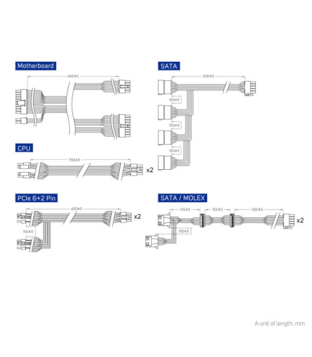 - Cables incluidos: CPU, Peripheral (Molex), SATA