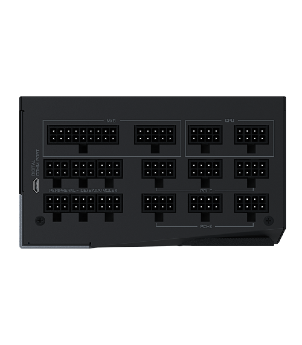 Gigabyte AORUS P1200W. Potencia total: 1200 W, Voltaje de entrada AC: 100 - 240 V, Frecuencia de entrada AC: 50/60 Hz. Alimentador de energía para tarjeta madre: 20+4 pin ATX, Longitud del cable de alimentación de la placa base: 61 cm, Longitud del cable de alimentación SATA: 150,650 mm. Utilizar con: PC, Factor de forma de fuente de alimentación (PSU): ATX, Certificación 80 PLUS: 80 PLUS Platinum. Color del producto: Negro, Tipo de enfriamiento: Activo, Diámetro de ventilador: 14 cm. Ancho: 150 mm, Profundidad: 86 mm, Altura: 160 mm