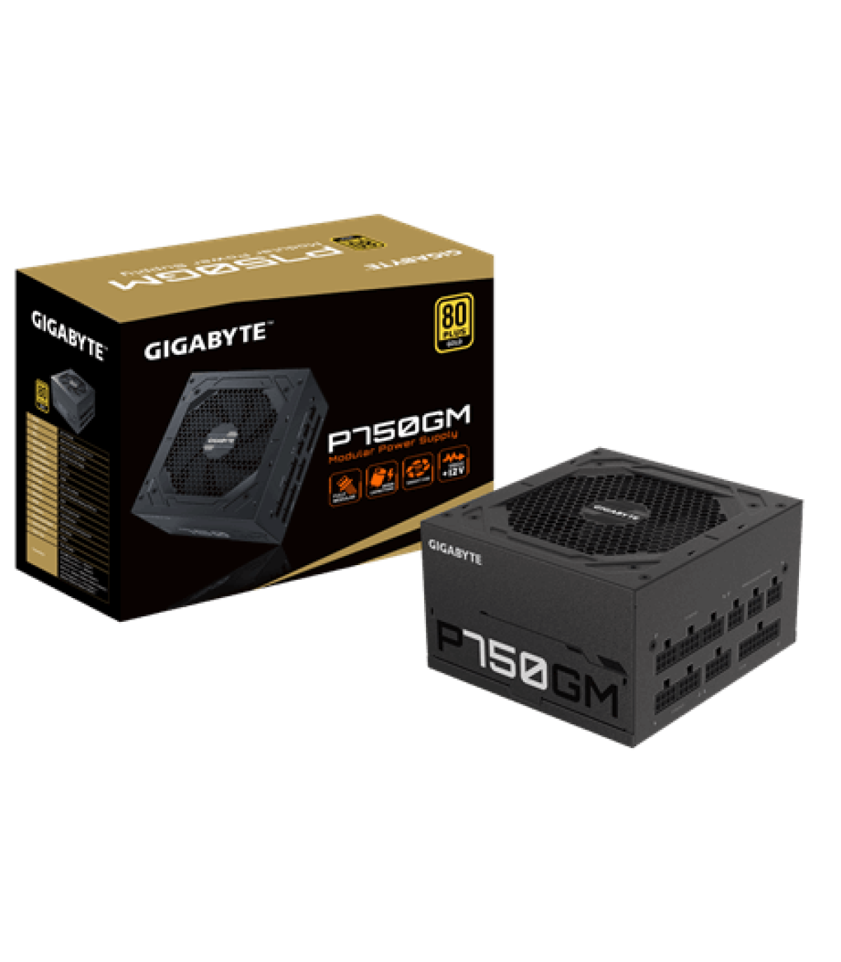 Gigabyte P750GM. Potencia total: 750 W, Voltaje de entrada AC: 100 - 240 V, Frecuencia de entrada AC: 50/60 Hz. Alimentador de energía para tarjeta madre: 20+4 pin ATX, Longitud del cable de alimentación de la placa base: 61 cm, Longitud del cable de alimentación SATA: 150,600 mm. Utilizar con: PC, Factor de forma de fuente de alimentación (PSU): ATX, Certificación 80 PLUS: 80 PLUS Gold. Color del producto: Negro, Tipo de enfriamiento: Activo, Diámetro de ventilador: 12 cm. Ancho: 150 mm, Profundidad: 140 mm, Altura: 86 mm