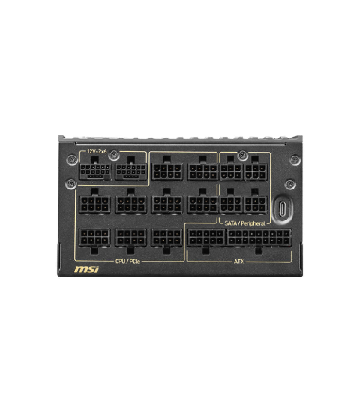MSI MEG Ai1600T PCIE5. Potencia total: 1600 W, Voltaje de entrada AC: 100 - 240 V, Corrección del factor de potencia tipo (PFC): Activo. Alimentador de energía para tarjeta madre: 24-pin ATX, Tipo de cableado: Totalmente modular. Utilizar con: PC, Factor de forma de fuente de alimentación (PSU): ATX, Certificación 80 PLUS: 80 PLUS Titanium. Color del producto: Negro, Diámetro de ventilador: 13,5 cm. Ancho: 190 mm, Profundidad: 150 mm, Altura: 86 mm
