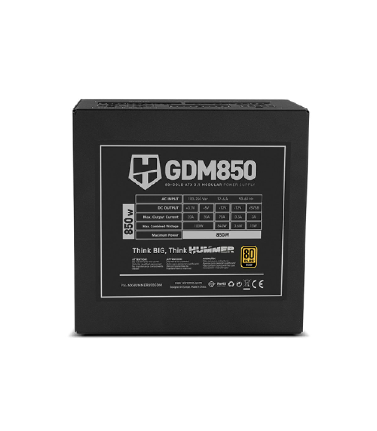 Diseñadas para garantizar una eficiencia de hasta el 90%, Hummer GDM, es la nueva serie de fuentes modulares con certificado 80 PLUS Gold de Nox. Estas fuentes de alimentación Nox garantizan una potencia constante y el rendimiento superior que exigen las configuraciones más exigentes.