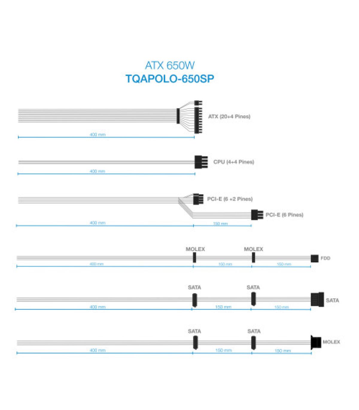 - Longitud del cable de alimentación SATA: 400,550,700 mm