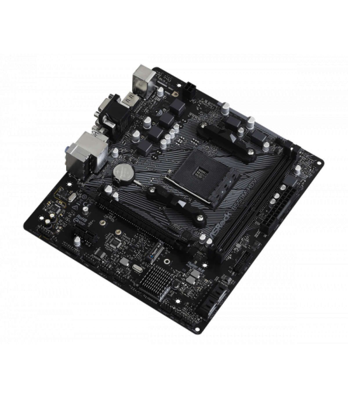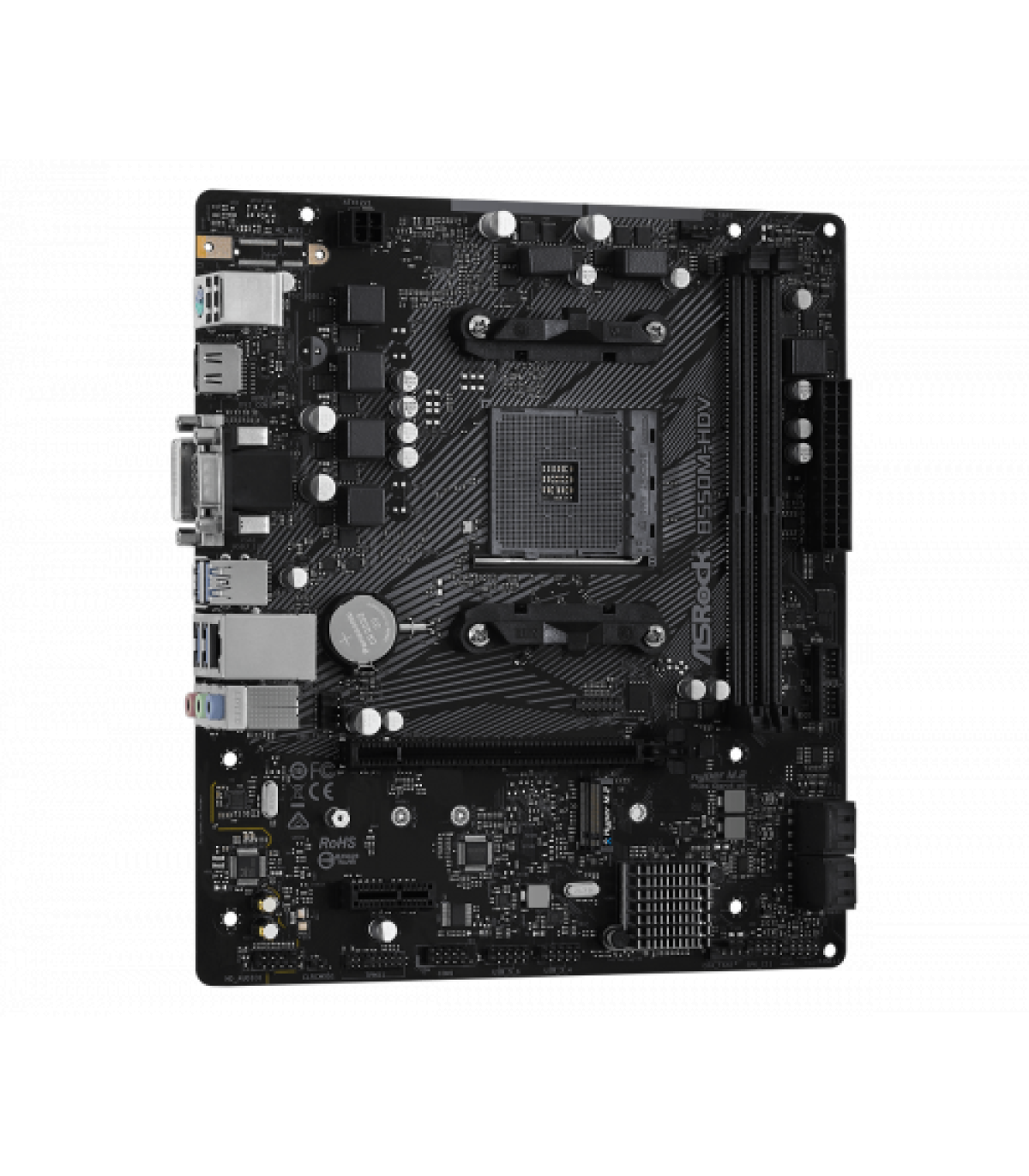 Asrock B550M-HDV. Fabricante de procesador: AMD, Socket de procesador: Zócalo AM4, Procesador compatible: AMD Ryzen 3 3rd Gen, 3rd Generation AMD Ryzen 5, 3rd Generation AMD Ryzen 7, 3rd Generation AMD.... tipos de memoria compatibles: DDR4-SDRAM, Tipo de ranuras de memoria: DIMM, Velocidades de reloj de memoria soportadas: 2133,2400,2667,2933,3200,3466,3600,3733,3800,3866,4000,4133,4200,4266,4333,4400,4466,4533,4600,4666. Interfaces de disco de almacenamiento soportados: M.2, Serial ATA III. Graphics chipset: AMD, Adaptador gráfico: Radeon Vega. Tipo de interfaz ethernet: Gigabit Ethernet, Controlador LAN: Realtek RTL8111H