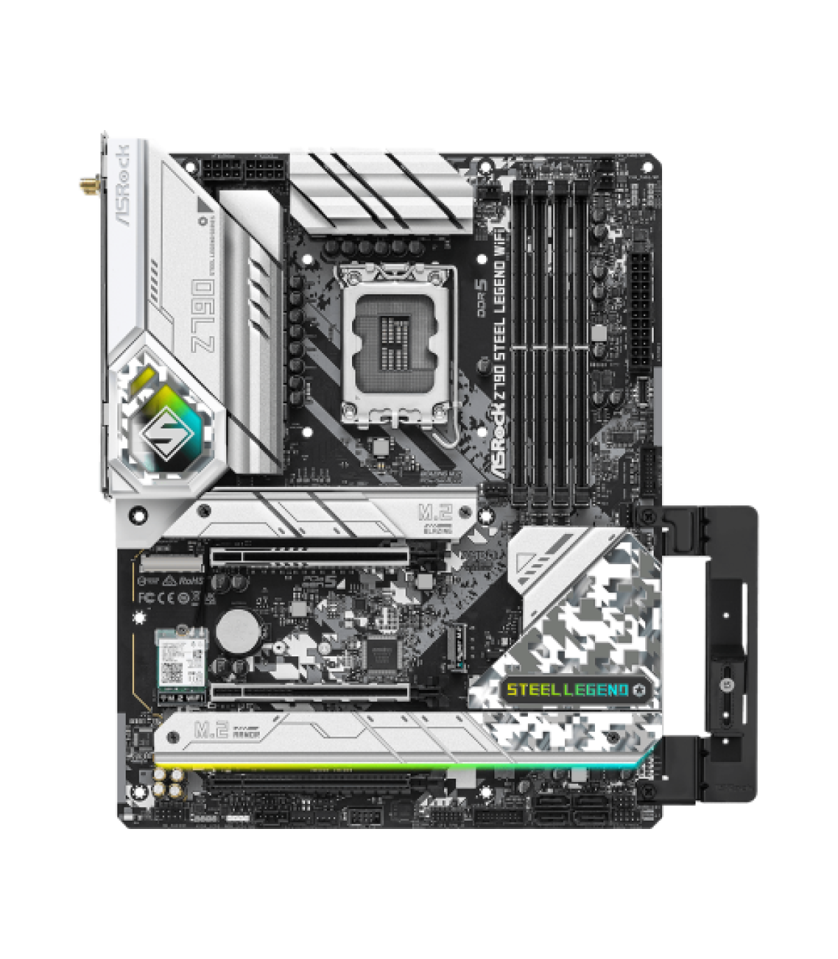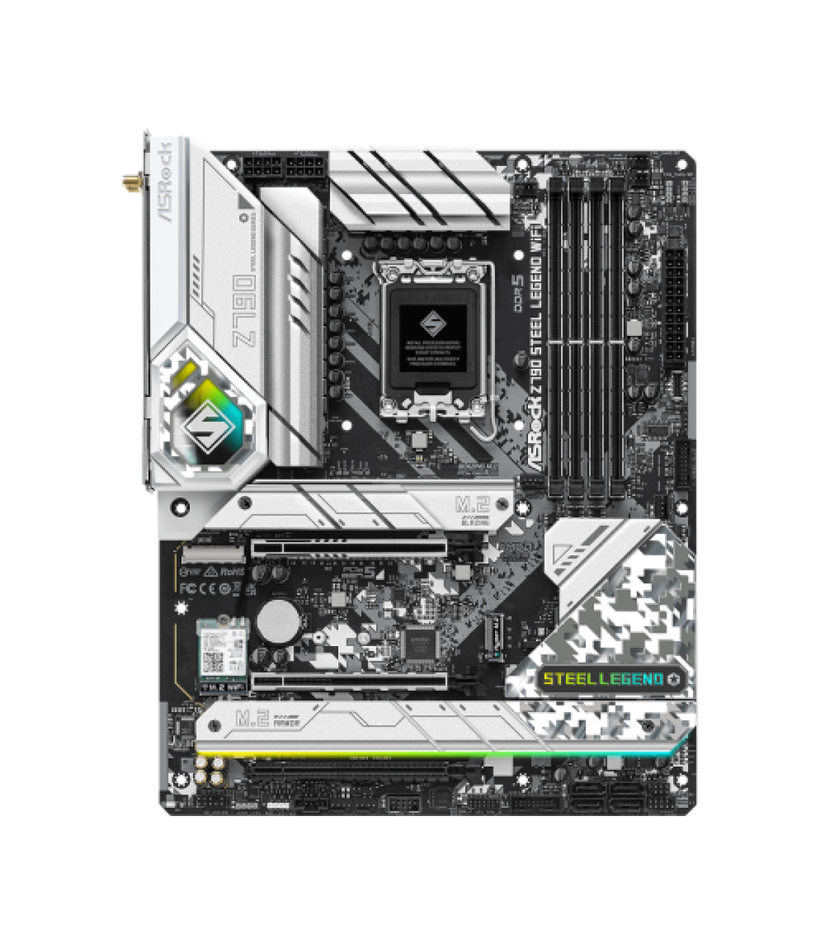 Asrock Z790 Steel Legend WiFi. Fabricante de procesador: Intel, Socket de procesador: LGA 1700, Procesador compatible: Intel® Core™ i5, Intel® Core™ i7, Intel® Core™ i9. tipos de memoria compatibles: DDR5-SDRAM, Memoria interna máxima: 128 GB, Tipo de ranuras de memoria: DIMM. Interfaces de disco de almacenamiento soportados: M.2, SATA III, Tipos de unidades de almacenamiento admitidas: HDD & SSD, Niveles RAID: 0, 1, 5, 10. Tipo de interfaz ethernet: 2.5 Gigabit Ethernet, Controlador LAN: Dragon RTL8125BG, Estándar Wi-Fi: Wi-Fi 6E (802.11ax). Componente para: PC, Factor de forma: ATX, Familia del chipset: Intel