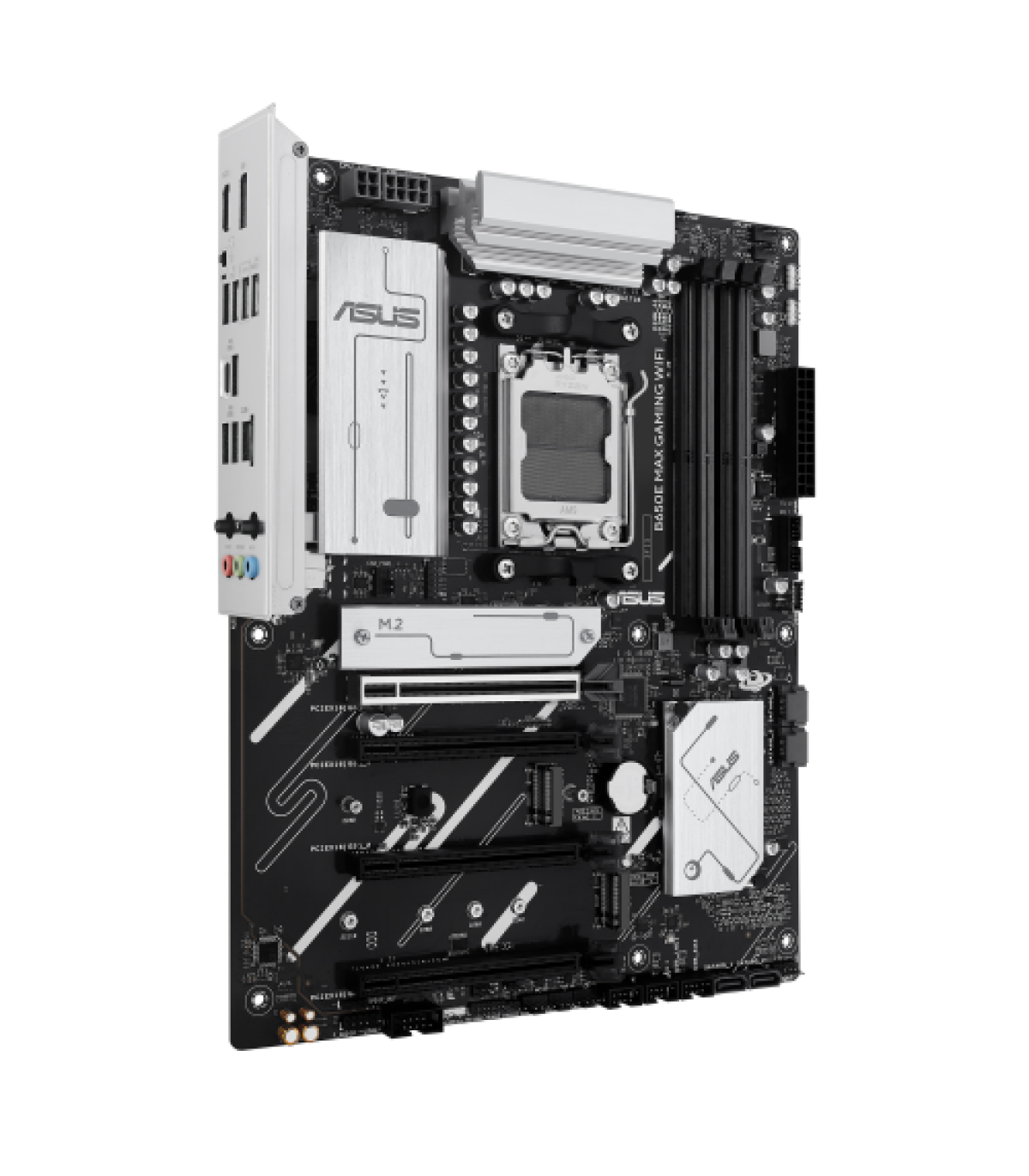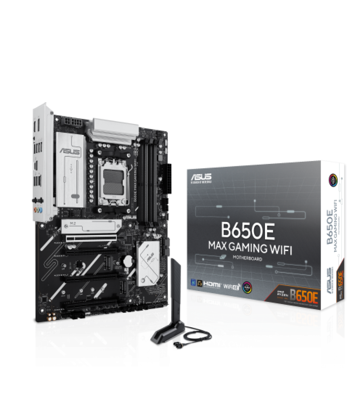 ASUS B650E MAX GAMING WIFI. Fabricante de procesador: AMD, Socket de procesador: Zócalo AM5, Procesador compatible: AMD Ryzen 7000 Series, AMD Ryzen 8000 Series, AMD Ryzen 9000 Series. tipos de memoria compatibles: DDR5-SDRAM, Memoria interna máxima: 256 GB, Tipo de ranuras de memoria: DIMM. Interfaces de disco de almacenamiento soportados: M.2, PCI Express 5.0, SATA III, Tipos de unidades de almacenamiento admitidas: HDD & SSD, Niveles RAID: 0, 1, 5, 10. Tipo de interfaz ethernet: 2.5 Gigabit Ethernet, Estándar Wi-Fi: Wi-Fi 6E (802.11ax), Wi-Fi estándares: Wi-Fi 6E (802.11ax). Componente para: PC, Factor de forma: ATX, Familia del chipset: AMD