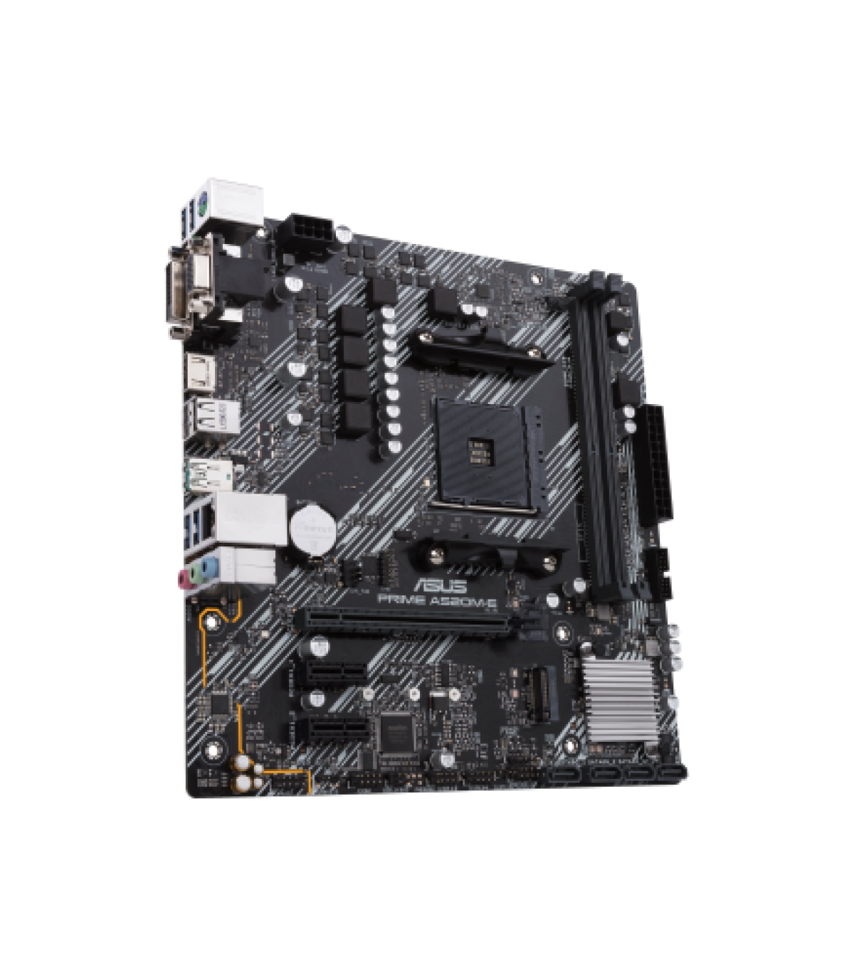 ASUS PRIME A520M-E/CSM. Fabricante de procesador: AMD, Socket de procesador: Zócalo AM4, Procesador compatible: AMD Ryzen™ 3, AMD Ryzen™ 5, AMD Ryzen™ 7. tipos de memoria compatibles: DDR4-SDRAM, Memoria interna máxima: 64 GB, Tipo de ranuras de memoria: DIMM. Interfaces de disco de almacenamiento soportados: M.2, SATA III, Tipos de unidades de almacenamiento admitidas: HDD & SSD, Niveles RAID: 0, 1, 10. Tipo de interfaz ethernet: Ethernet rápido, Gigabit Ethernet, Controlador LAN: Realtek RTL8111H. Componente para: PC, Factor de forma: micro ATX, Familia del chipset: AMD