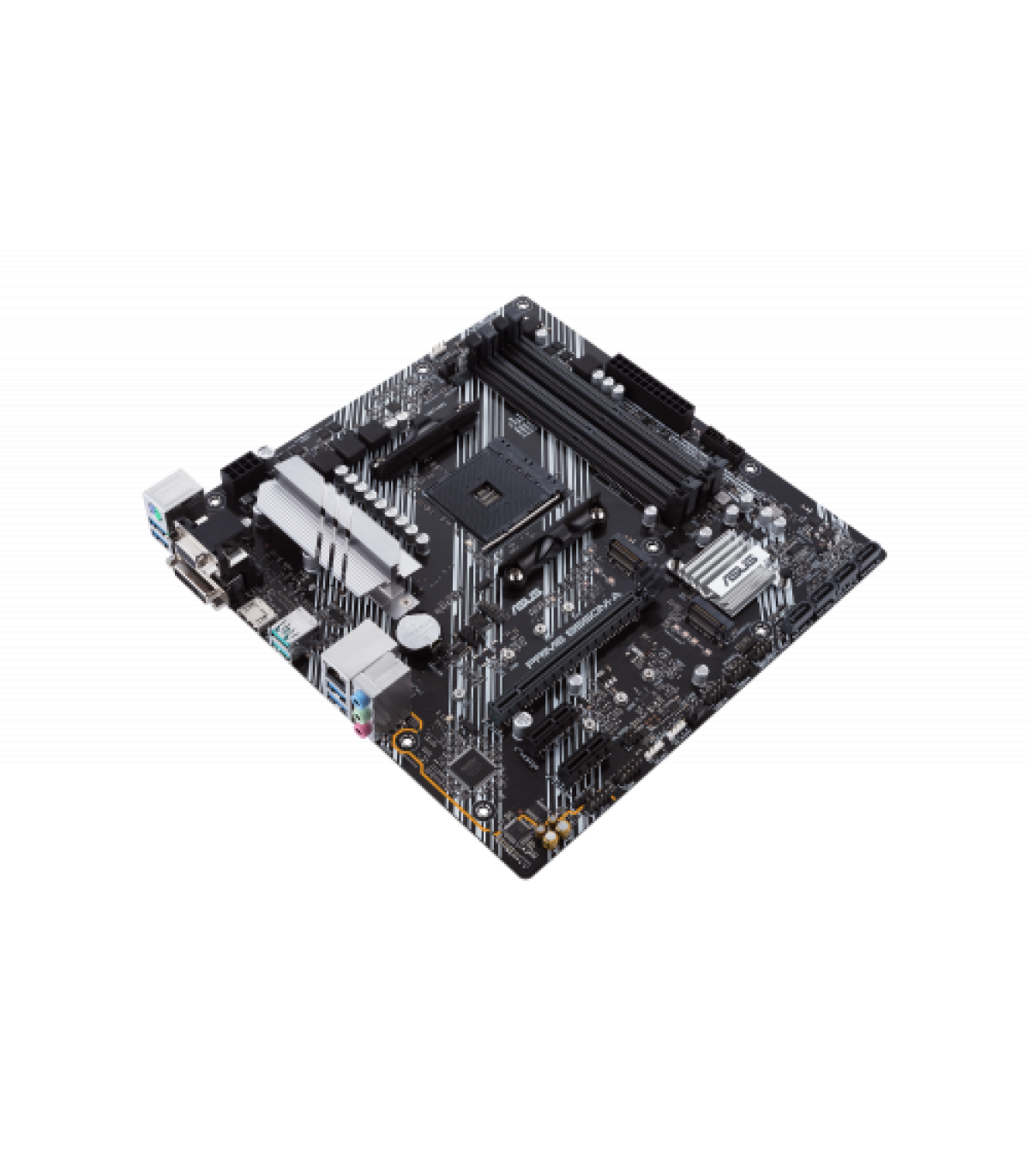 ASUS PRIME B550M-A. Fabricante de procesador: AMD, Socket de procesador: Zócalo AM4, Procesador compatible: AMD Ryzen 3 3rd Gen, 3rd Generation AMD Ryzen 5, 3rd Generation AMD Ryzen 7, 3rd Generation AMD.... tipos de memoria compatibles: DDR4-SDRAM, Tipo de ranuras de memoria: DIMM, Velocidades de reloj de memoria soportadas: 2133,2400,2666,2800,3000,3200,3333,3466,3600,3733,3866,4000,4133,4266,4400,4600 MHz. Interfaces de disco de almacenamiento soportados: M.2, SATA. Controlador LAN: Realtek 8111H. Factor de forma: micro ATX, Familia del chipset: AMD, Chipset: AMD B550